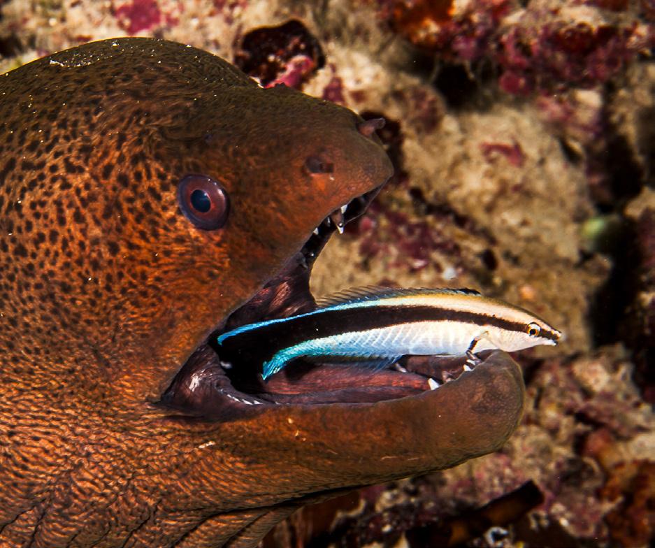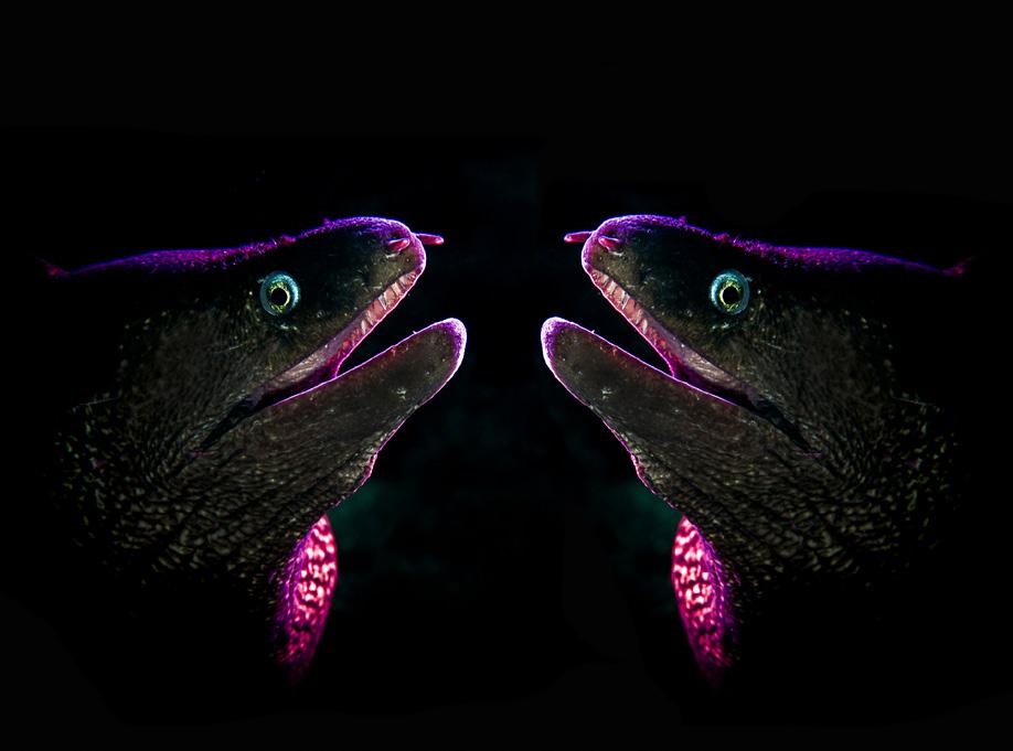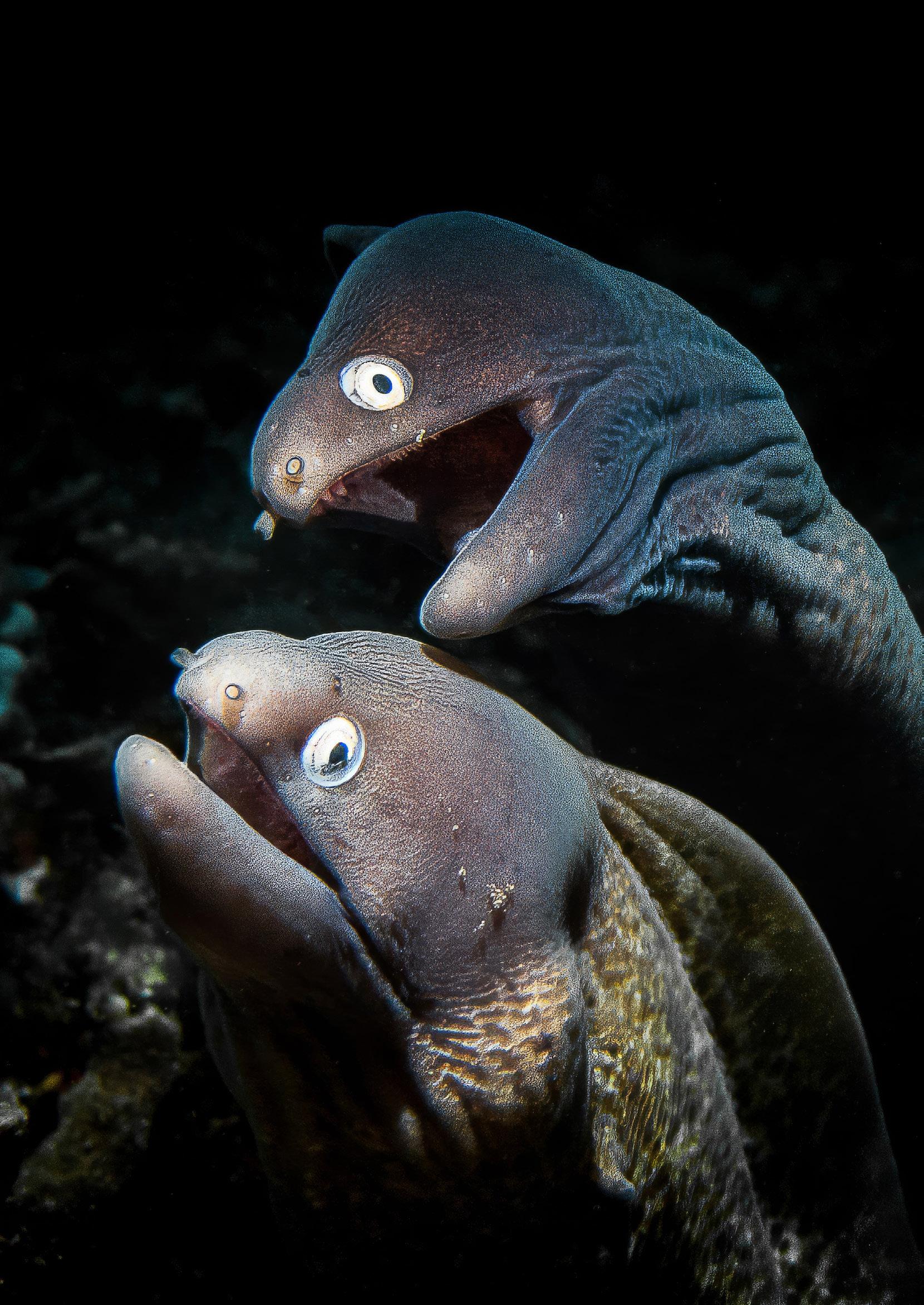 Coverfoto: Koppeltje murenen. Camera: Olympus E-M5 Mark II, ISO 200, 1/250 sec. bij f/11. Lens: Leica DG macro Elmarit 45 F/2.8. Foto: Brenda de Vries.