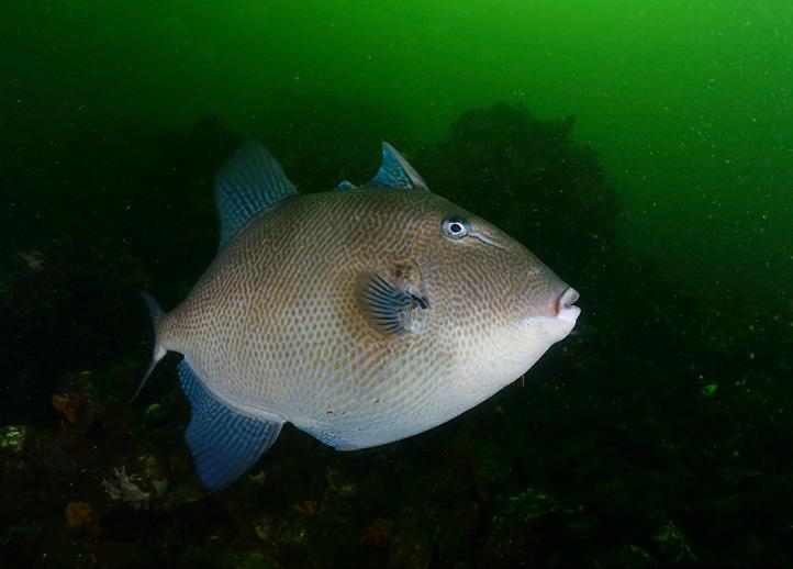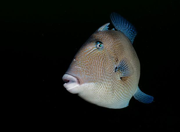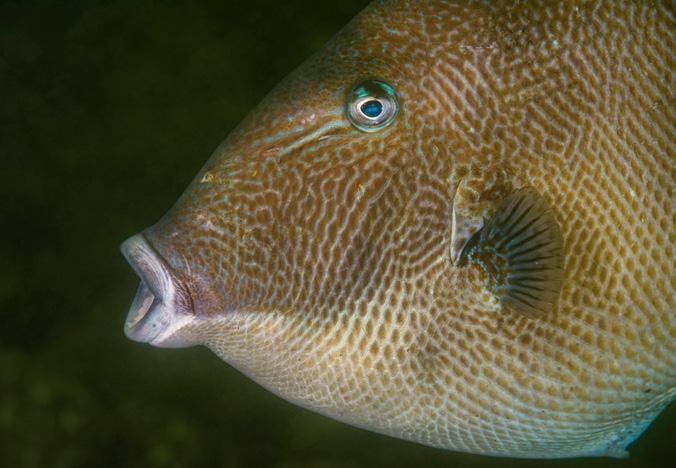 Grijze trekkervis gefotografeerd met een 105 macro plus MFO-3.