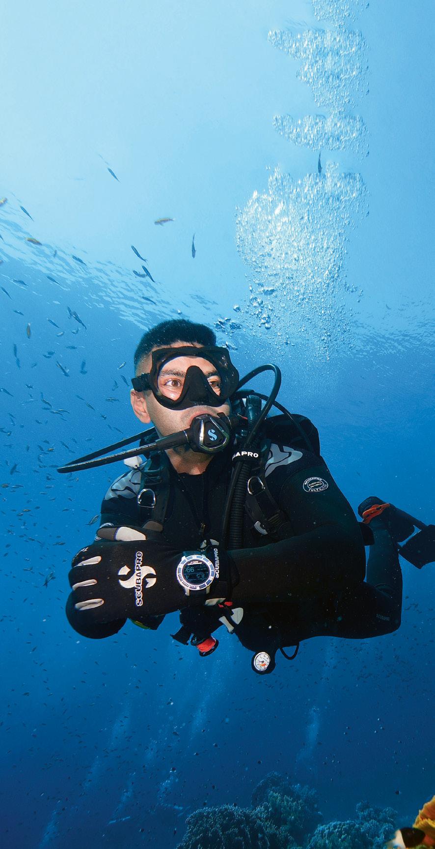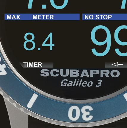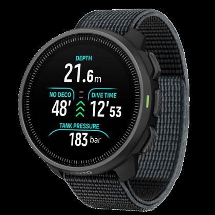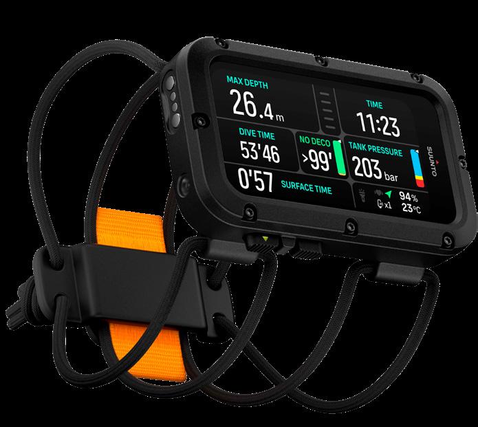 ` De heldere AMOLED-display met hoog contrast biedt uitstekende leesbaarheid onder alle omstandigheden, terwijl de compacte, lekvrije constructie en handschoenvriendelijke knoppen zorgen voor comfort en vertrouwen tijdens elke duik.