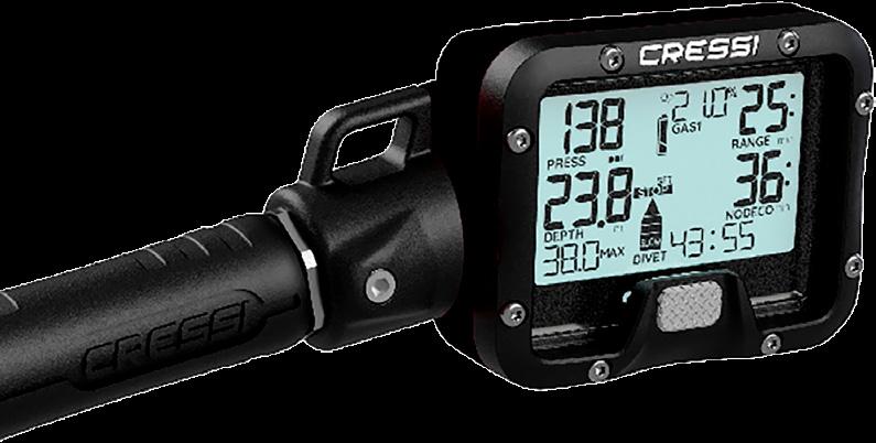` Draadloze tankdrukmeting geeft realtime gaswaarden en gasverbruik weer. Ondersteuning voor twee zenders maakt het voor sidemount-duikers eenvoudig om beide tanks te volgen, terwijl duidelijke kleurgecodeerde visuals direct inzicht bieden tijdens de duik.