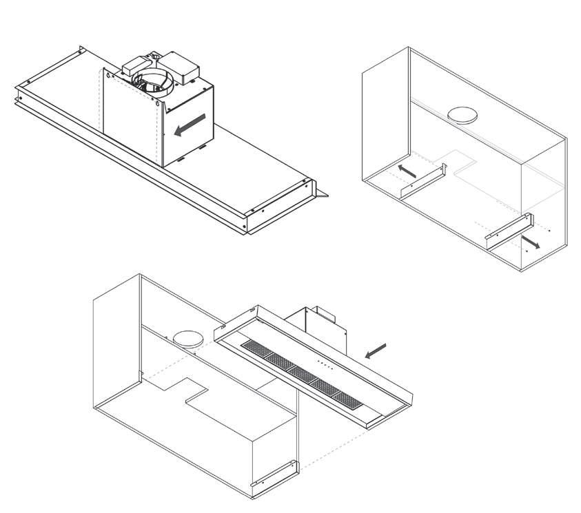 • The configuration of the filters and lighting of the hood can vary from the catalogue illustration, depending on the model and size of the hood. This is to maximise the performance of the product and is dependent on the layout of the cooking elements. Our technical department will gladly offer you advice on how to do this.