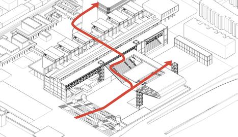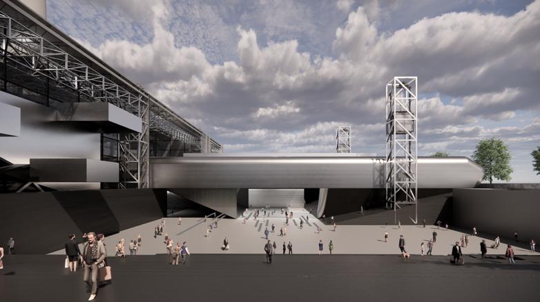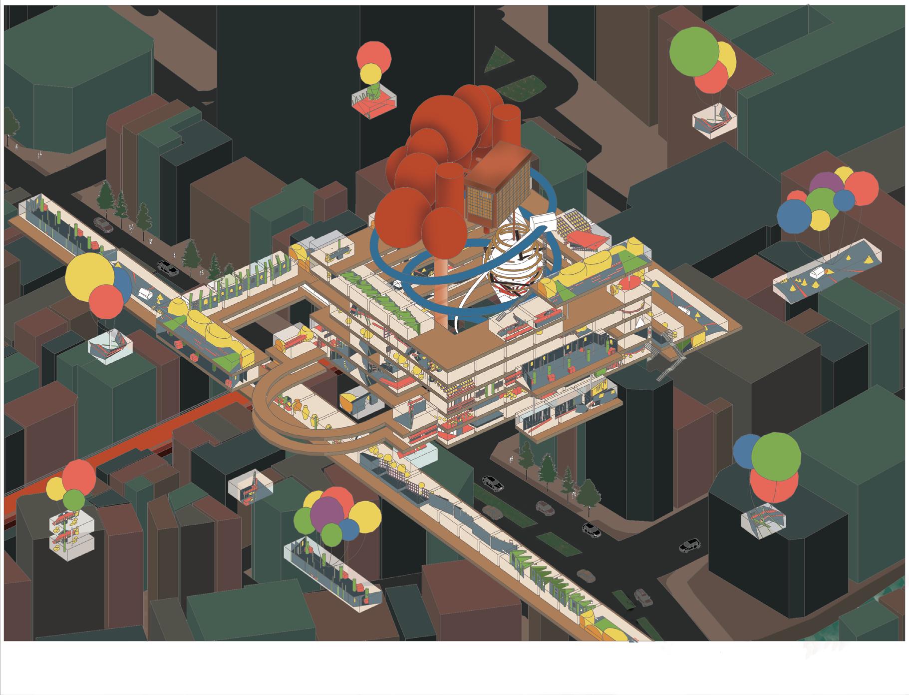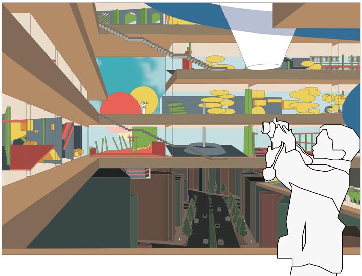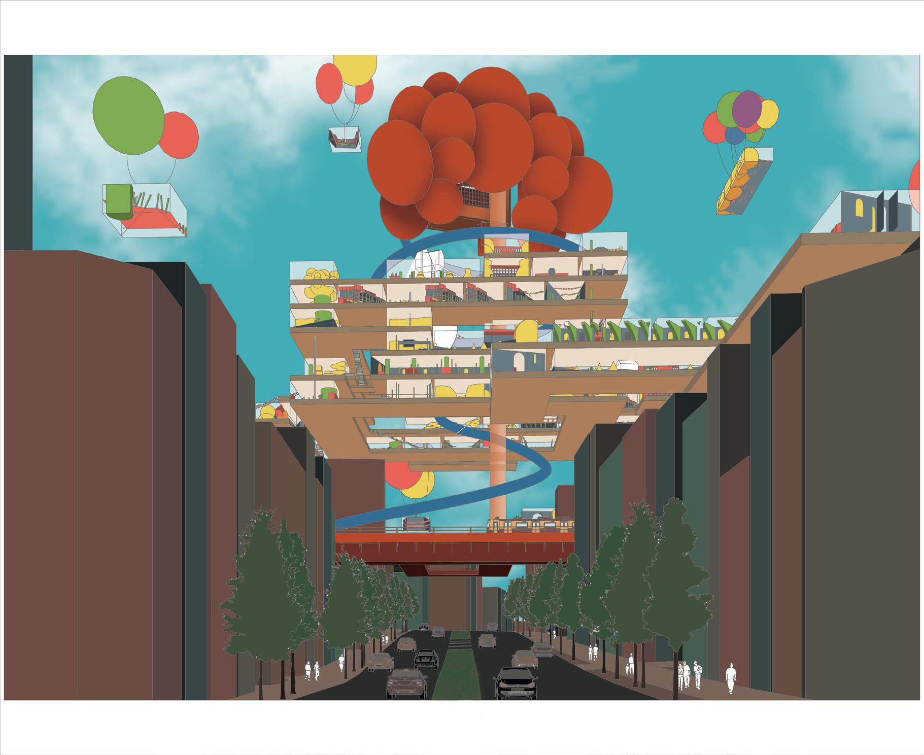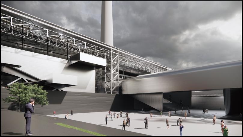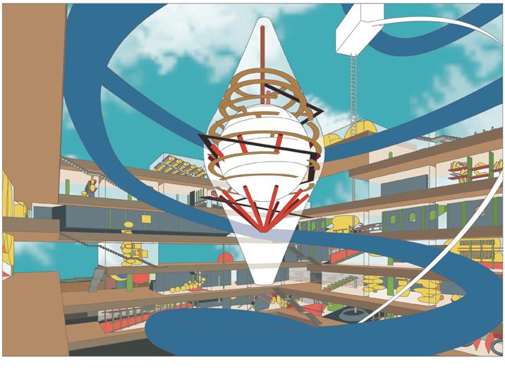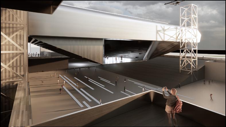 An urban installation with function is inserted to the industrial park. The Specta-craft not only is a theater itself, but it also changes how other stages are used when the spacecraft lands or hovers. The change in the skeleton of the industrial park is catalyzed by the vertical movement of the Specta-craft.