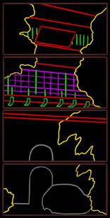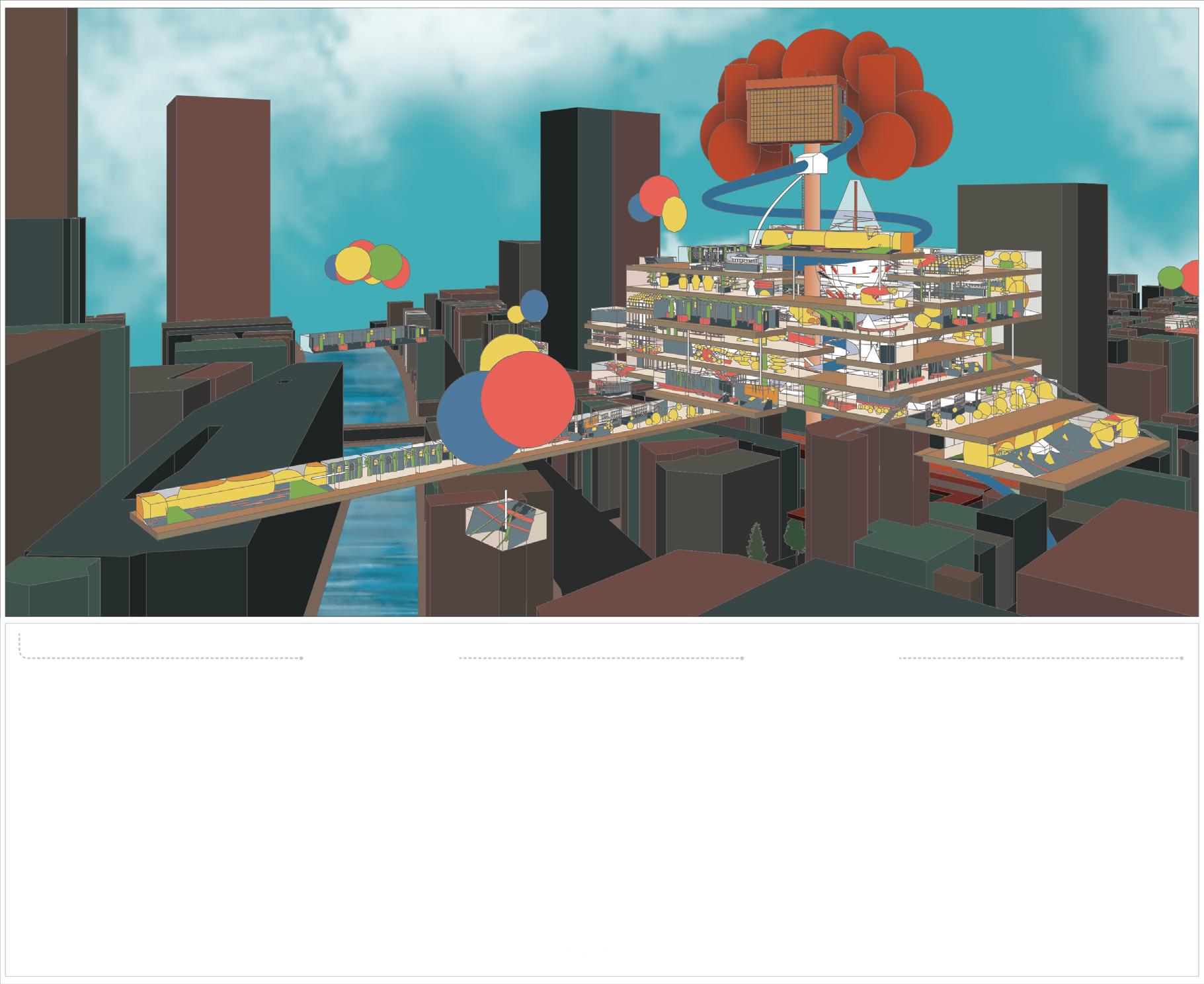 The third tower resonates with the grid structure of Akihabara, creating a box-lane complex. Towers from the fragment montage are rejoined to form buidings, just like the architecture in the district. On the other hand, horizontal fragments form linkages, as a representation of the overground railway in both Akihabara and the world in Spirited Away.