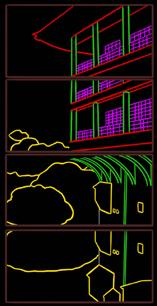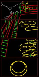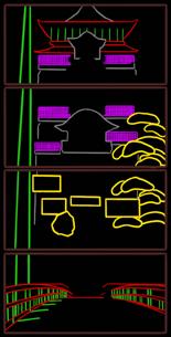 Storyboard not only is a visual presentation of a script, but also a vertical structure for scene and space change. In each shot, a main type dominates the frame. Just like the storyboard, camera movement is a way to change space and mood through change in space structure. The shots can be broken down into seperate frames, and the types in each frames are indicated. these moving frames form towers of abtract types. These montages resonates the density of the district of Akihabara.