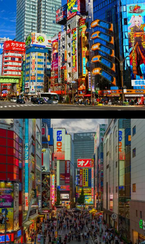 is a gaming district in Japan. In spite of its strictly gridded structure, lots of surprises are interspersed in the city. No matter the form, there is always capacity for new elements and changes among the district, such as planes like floating screens and posters, linear threads like the light rail, and also objects like statues and large figures lingering among buildings. The experience is just like venturing into another world, from where you can discover new scenes just around the corner. This reminds me of Hayao Miyazaki's film Spirited Away, in which chihiro accidentally stepped into a realm of spirits and monsters.