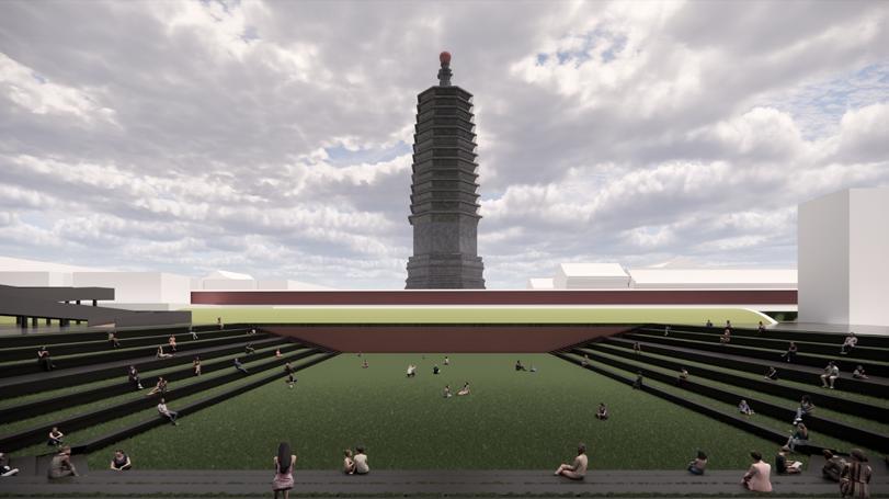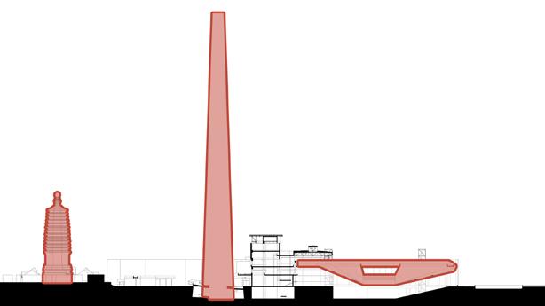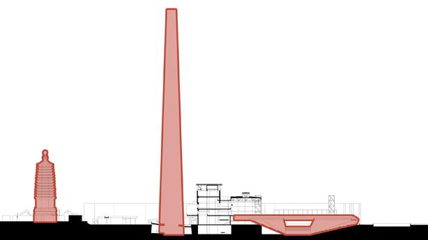 History of the old Beijing has precipitated hundreds of years of culture and industrial progress. In the western edge of the Beijing City Wall, the Second Thermal Power Plant is a monument of the industrial age. Right next to it is the TianNing Temple Tower, a Buddhist temple built in the Northern Wei Dynasty. The TianNing Temple Tower and the chimney of the thermal power complex are two symbols of different eras of the city--the traditional and the industrial. What is to be inserted to the complex would be a symbol of the present, or even the future. The Specta-craft creates two systems, which catalyze the longitudinal and the latitudinal structure of the zone respectively. The systems changes when the spacecraft takes flight or anchors.