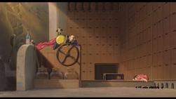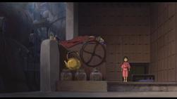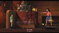 The kinetics of the spirits' world is analysed. With the bathhouse as the center of the other world, the activities of workers, customers all surrounds the bathing industry in the house. The boiler room, which supported all events in the house, is the core space of the whole Spirited Away universe. Activities inside the boiler room were captured with fixed camera angle. Five appearances of the same camera angle are analysed. The energy bubbles of the five scenes were transformed into boiler balloons, forming the cloud engine, as a power station.