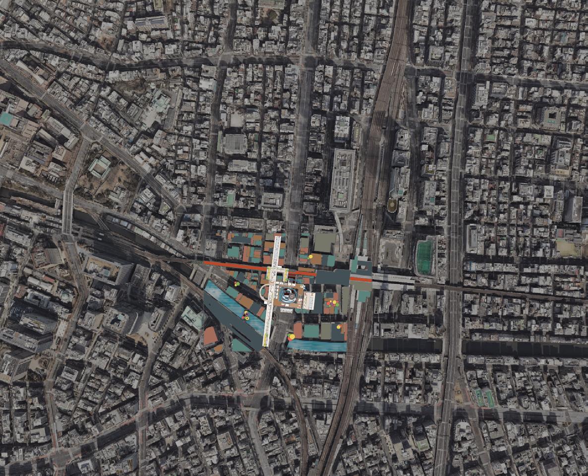 A new railway is inserted to the complex, cutting through the river of Akihabara.