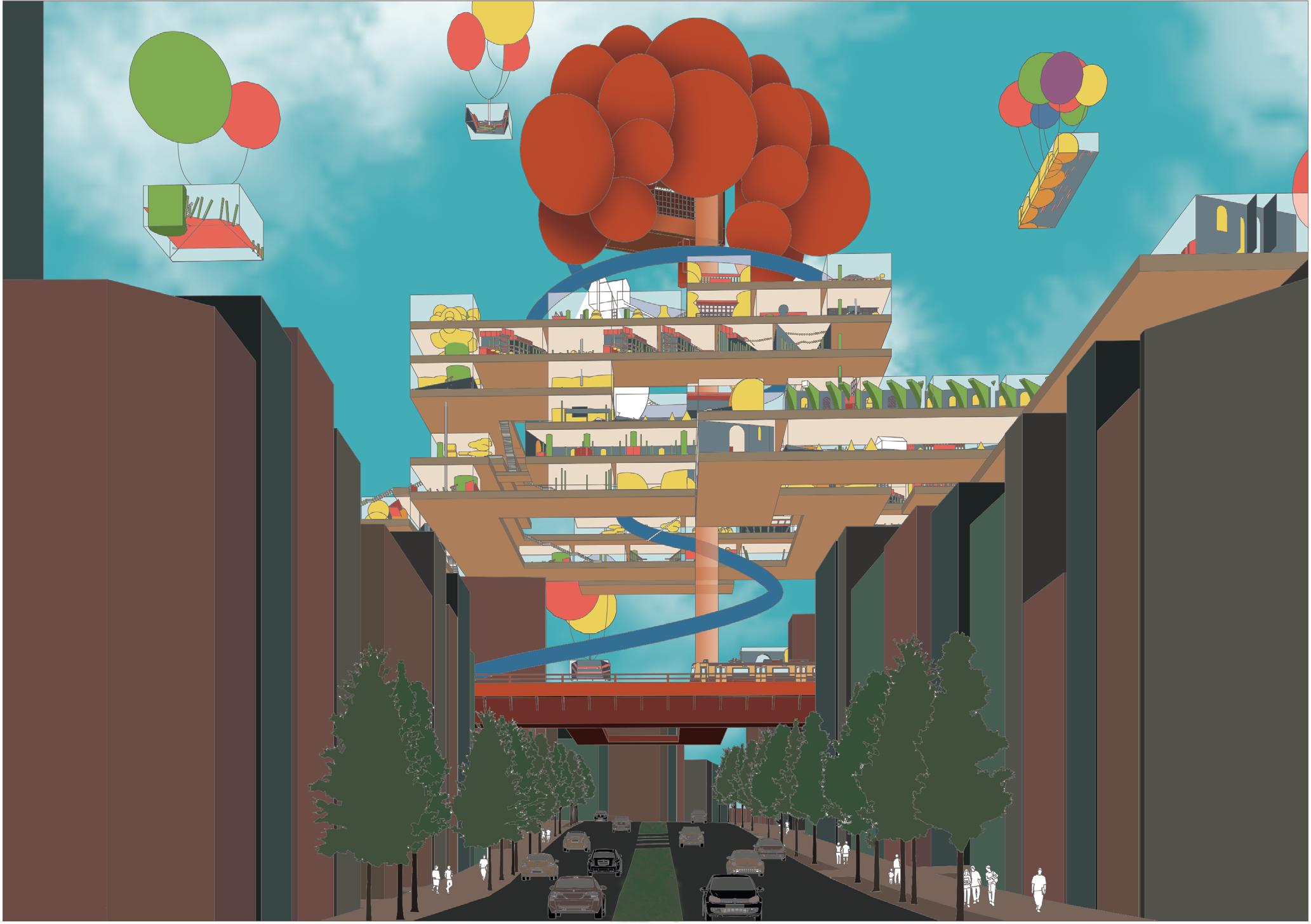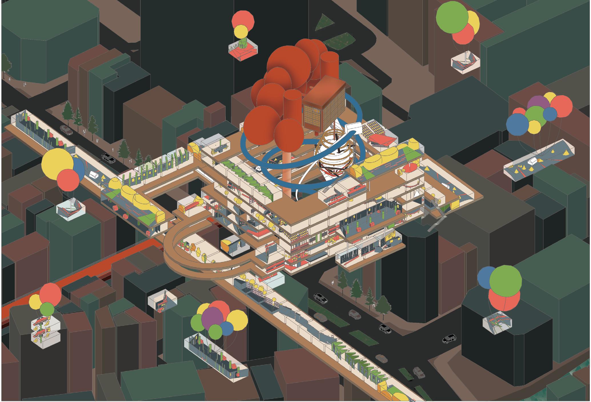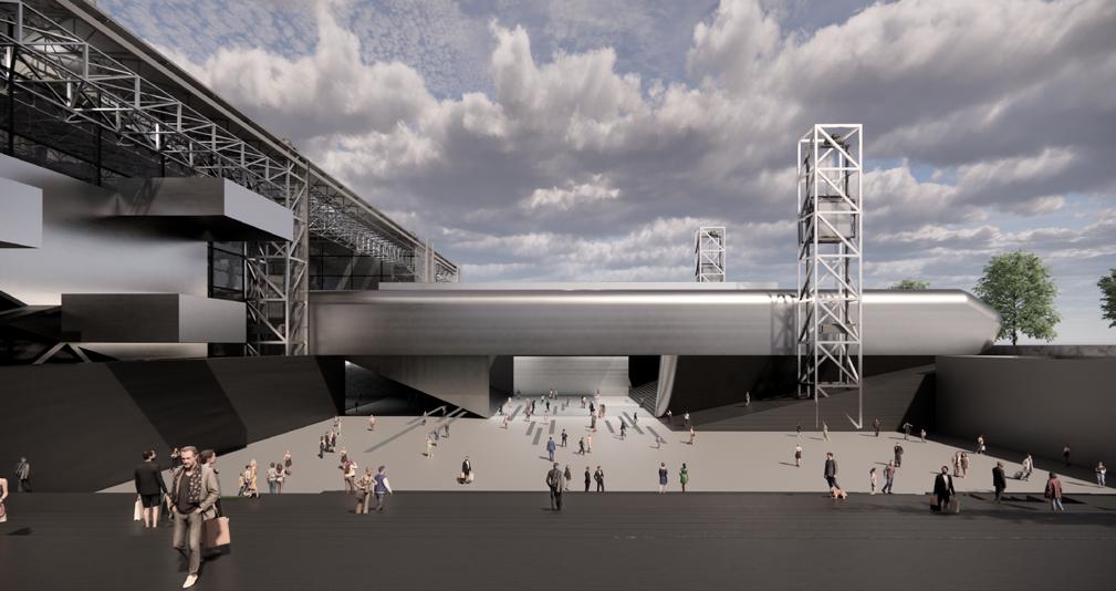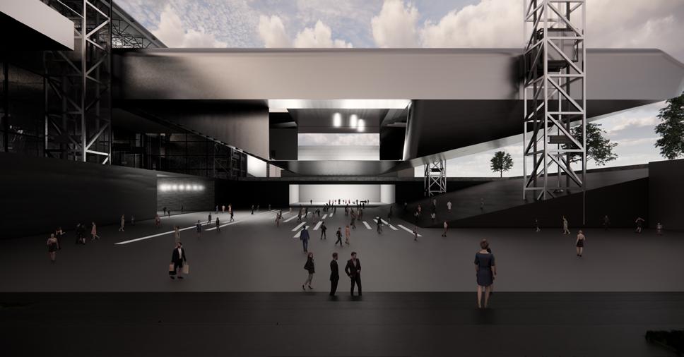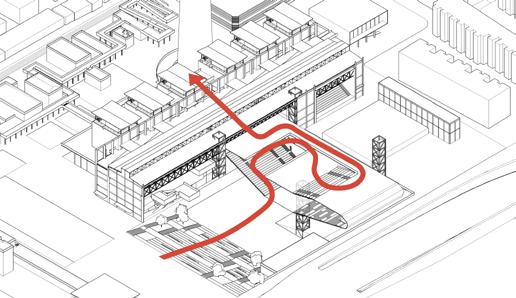 An urban installation with function is inserted to the industrial park. The Specta-craft not only is a theater itself, but it also changes how other stages are used when the spacecraft lands or hovers. The change in the skeleton of the industrial park is catalyzed by the vertical movement of the Specta-craft. PERFORMANCE VIEWING