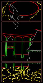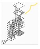 The third tower resonates with the grid structure of Akihabara, creating a box-lane complex. Towers from the fragment montage are rejoined to form buidings, just like the architecture in the district. On the other hand, horizontal fragments form linkages, as a representation of the overground railway in both Akihabara and the world in Spirited Away.