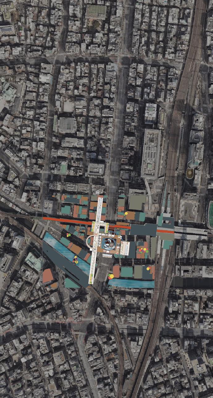 A new railway is inserted to the complex, cutting through the river of Akihabara.