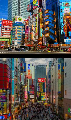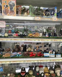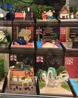 Akihabara is a bustling district in Tokyo, where anime has been what the city is famous for. Street logos, neon lights, gaming advertisements and animation posters populates the facades of the district. In a few of these buildings, fan products of Spirited Away and other Ghibli movies are sold. Just like