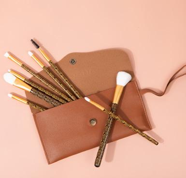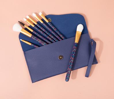 Create a flawless look with all the essentials. Great for beginners or makeup pros. Gentle on sensitive skin. The case is excellent for travel and effortless organization. You’ll get one of three sets that include a navy, gold, or brown pouch.