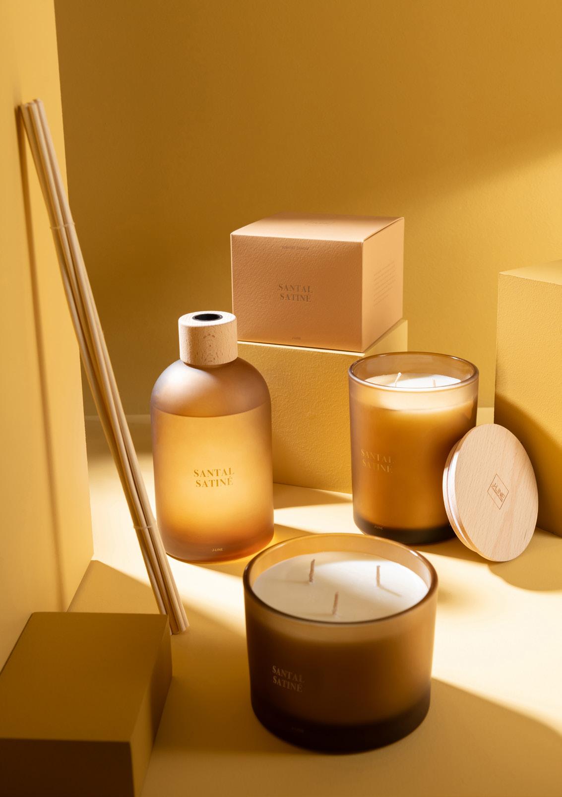 Laat je vervoeren door Santal Satiné, een luxueuze sandelhoutgeur die je stemming verlicht met zijn rijke, houtachtige en subtiel zoete boeket. Geniet van de luxe en het comfort die het brengt, en transformeer je huis in een satijnzachte cocon van sereniteit.