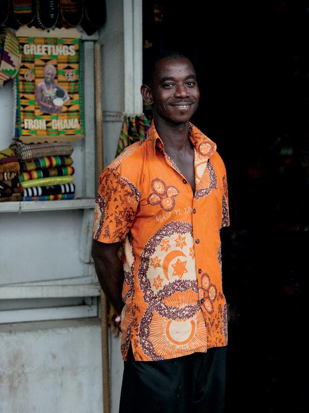 On the left hand page is a statue of Kwame Nkrumah, the first prime minister of an independent Ghana, in front of a Johnny Walker whisky ‘Keep Walking’ billboard.