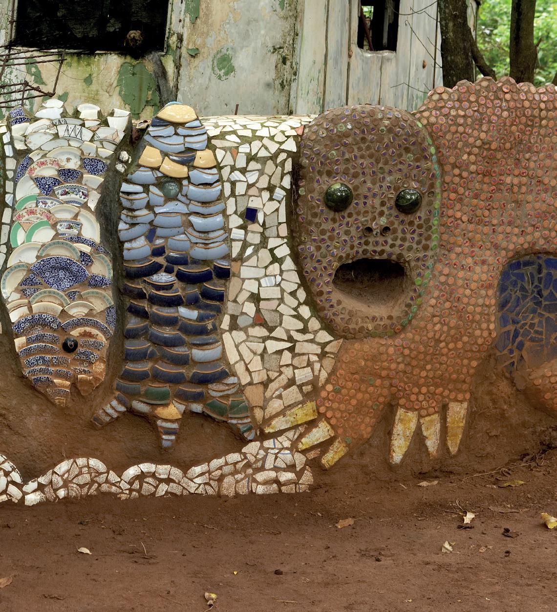 Built initially for shade in the otherwise barren land, the haunting sculptures loom between working posts. The evidence of her humble beginnings are here, from designs made only from bottle caps and scrap metal lead one right up to the Florentine, delicate glassware housed inside the statues.