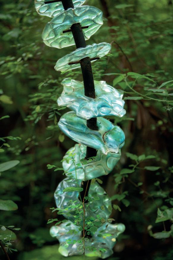 Nani still recycles every piece of material, even the tiniest of shards, from suncatchers to mosaics are finally melted into beads, that are produced at the factory run by Nani’s daughter Katrineka, a fine arts graduate from the USA. In every way they can, they focus on lowering energy consumption. Kitengela’s carbon footprint is minimal, its impact on its surrounds barely noted, save for its surreal appearance.