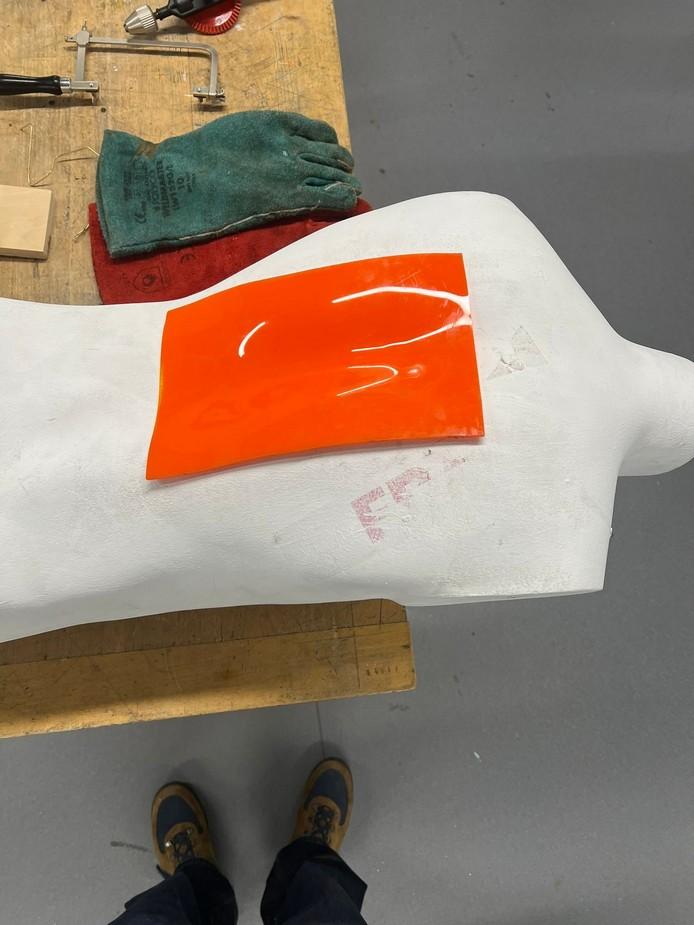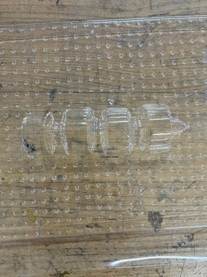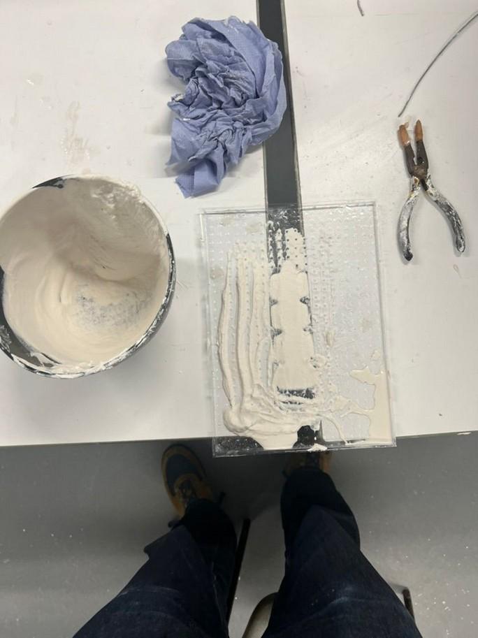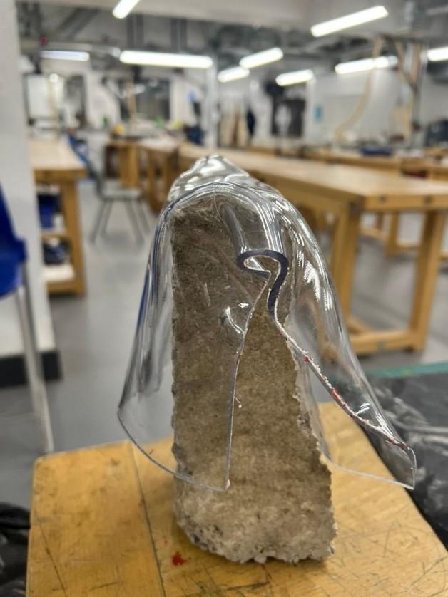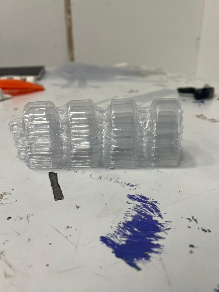 I then found disused packaging and wanted to create a back piece out of it. I felt it reflected my research in its large semi-circles having been juxtaposed by their arrangement. I worked with the vacuum former and plaster molding to mass produce individual pieces