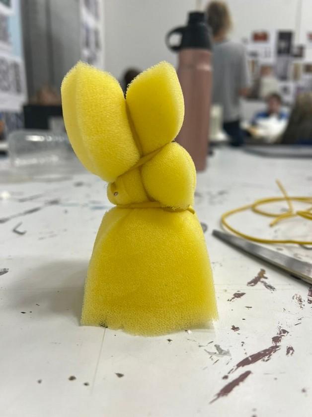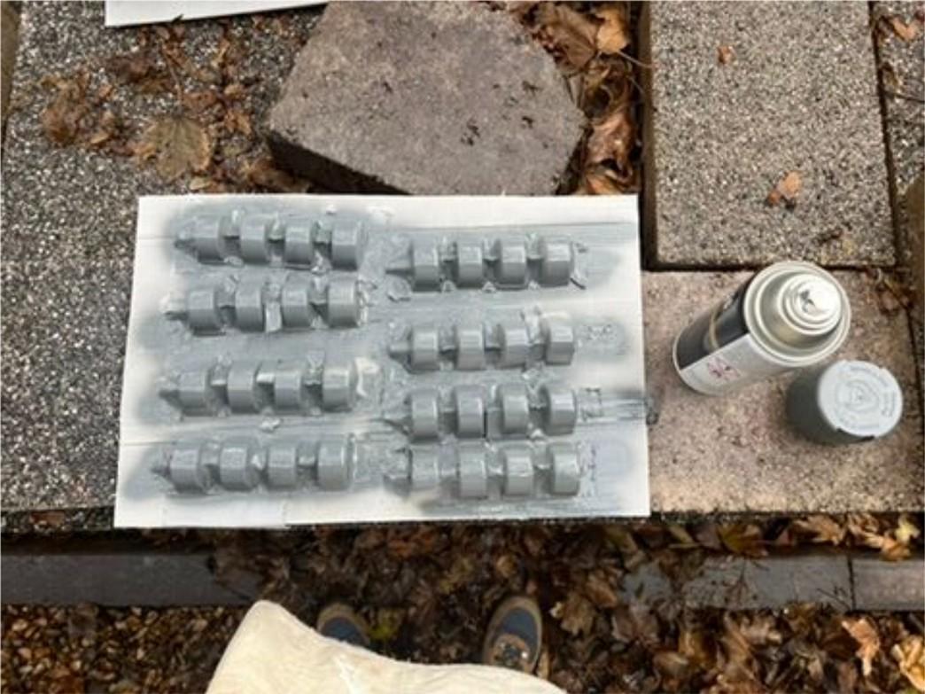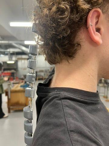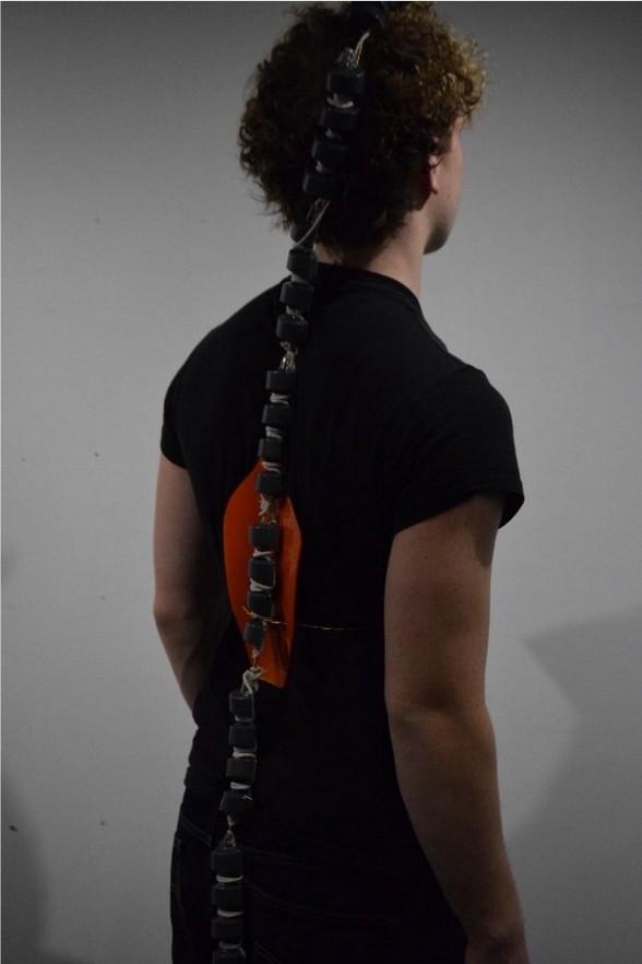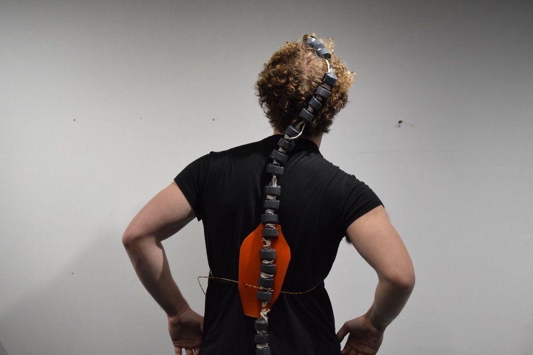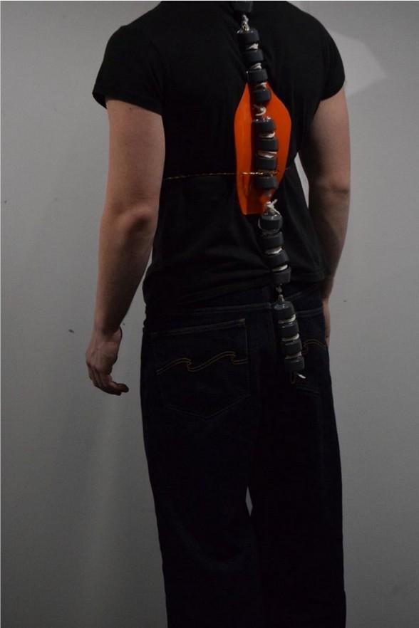 I then decided to create a back piece in order to support my piece structurally and spray painted the ”vertebrae” to create a more uniform appearance