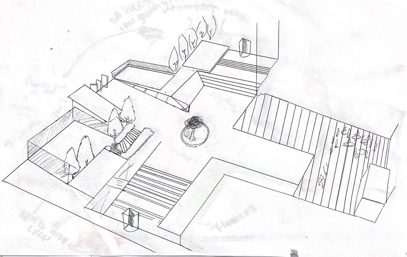 I couldn't finish this project due to time constraints and difficulty working with concrete blocks. These are my sketches which visualize what the project outcome should have looked
