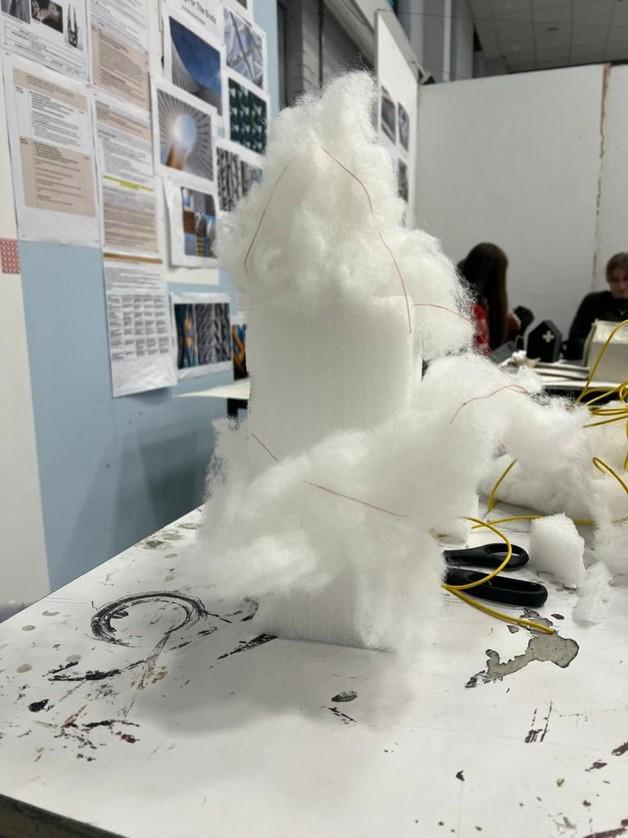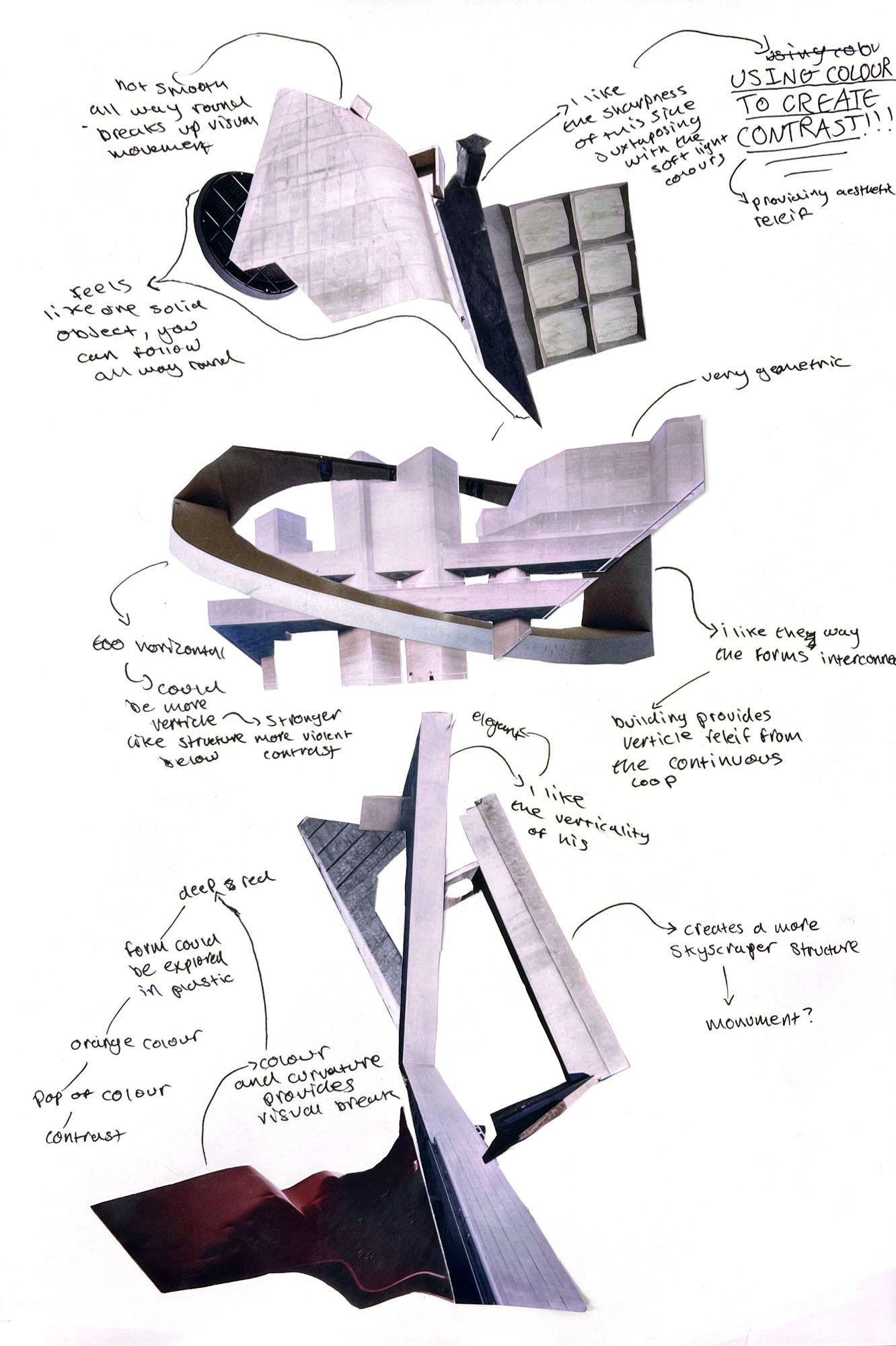 Here I explored the possibilities of the project and took elements from architecture to explore form. I was primarily looking at the effect of straight forms juxtaposing curvilinear forms, which directed my work from here.