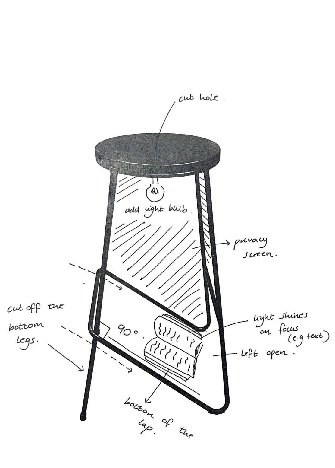 I wanted to explore lighting, these are my sketches and notes on the process, ending up embracing the rigidness of the concrete forms and looking in to making a free-standing concrete lamp