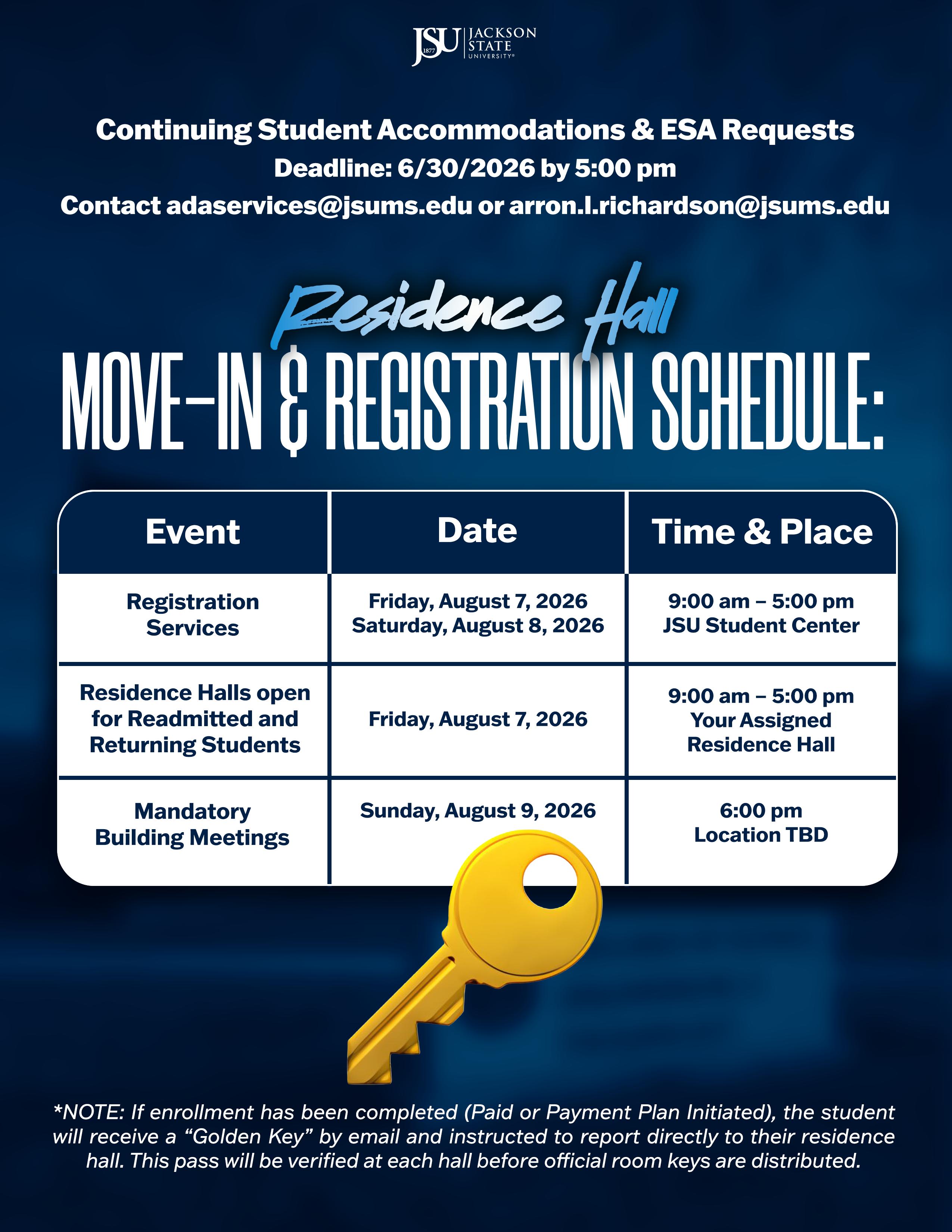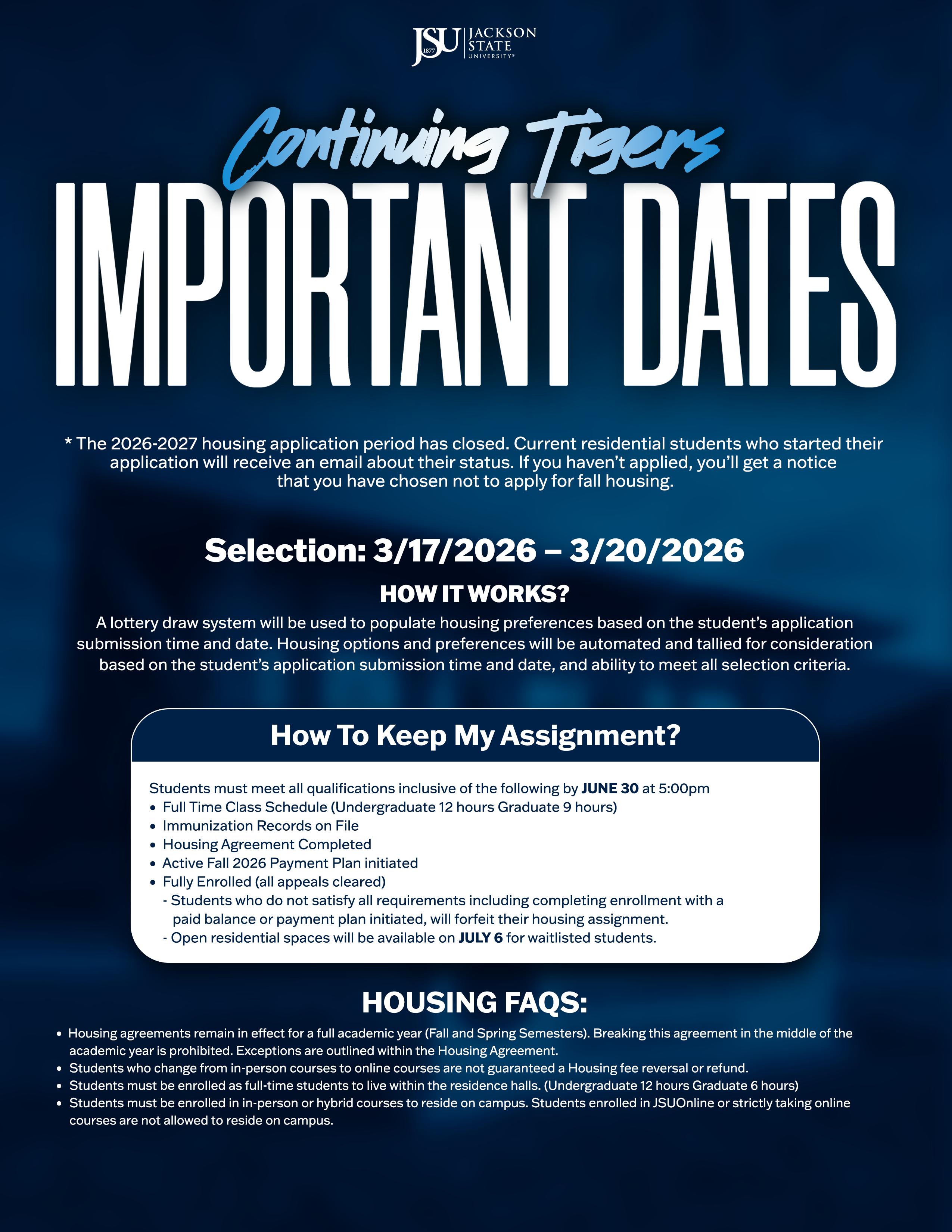 JSU Continuing Tigers Important Dates