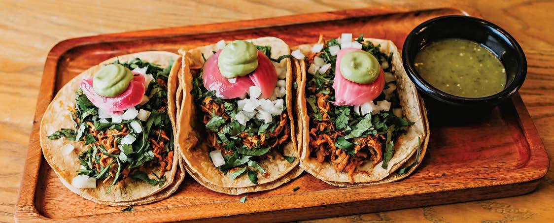 A lthough Jacksonville has its fair share of notable pizza places, Electric Dough Pizza Co. is the latest to join that list. Created by Chef Tom Gray (Prati Italia, Town Hall), and located in the old San Marco Theatre, pizzas crafted here are made using traditional Roman-style dough with the baked, cheesy edge similar to Detroit-style pies. Crispy and airy at the same time, the Mighty Quinn, (cacio e pepe sauce, mushrooms, arugula, fontina, porcini-truffle aioli) and the Godfather II, a meat-lover’s dream, are two menu standouts. Both are $20 for a medium and pair nicely with an Aperol Spritz. A full bar makes Electric Dough a great happy hour destination as well.