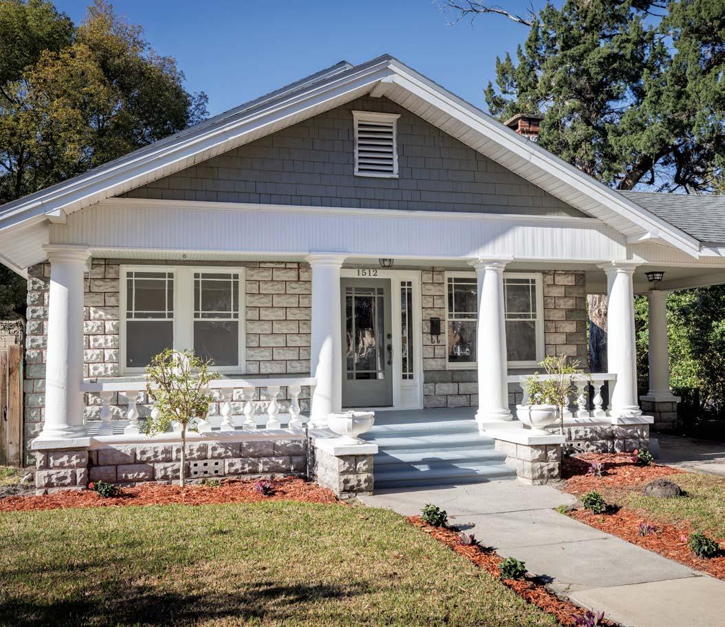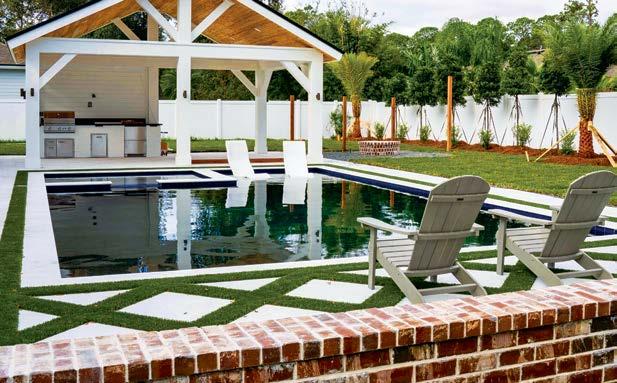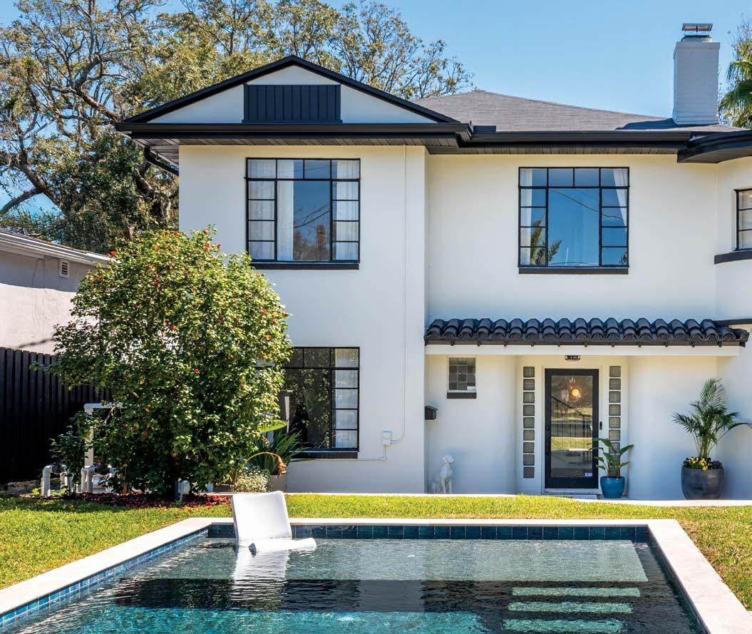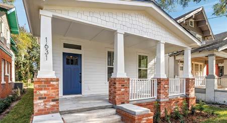 ing most evenings. They have been told that their house was formerly the “party house” of Avondale, which is another charming fact they learned only after moving in. They have focused most of their renovation work to the yard. They repaired the collapsed front retaining wall along St. Johns Ave. and added a privacy Podocarpus hedge. They installed a “Hamptons” inspired pool with stone and marble trim. An outdoor seating area with string lights creates the perfect gathering spot for friends and neighbors on Bourbon Alley. Inside, only minor cosmetic updates have been made to the kitchen and seating areas to modernize the space while complimenting the original authenticity of the home. *