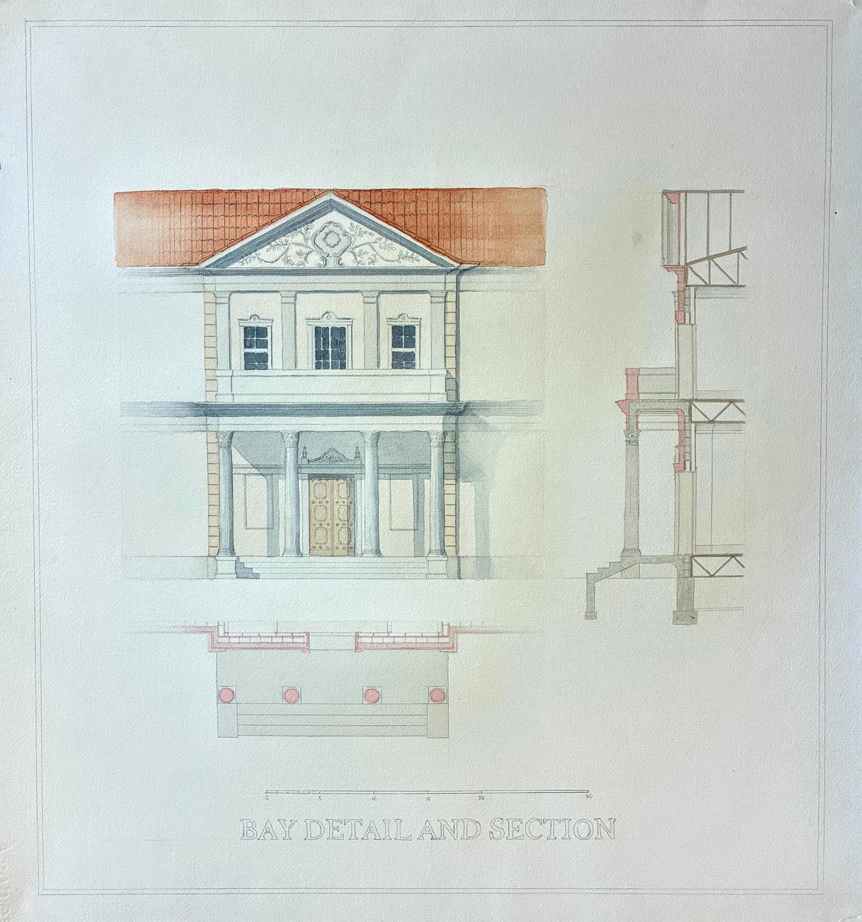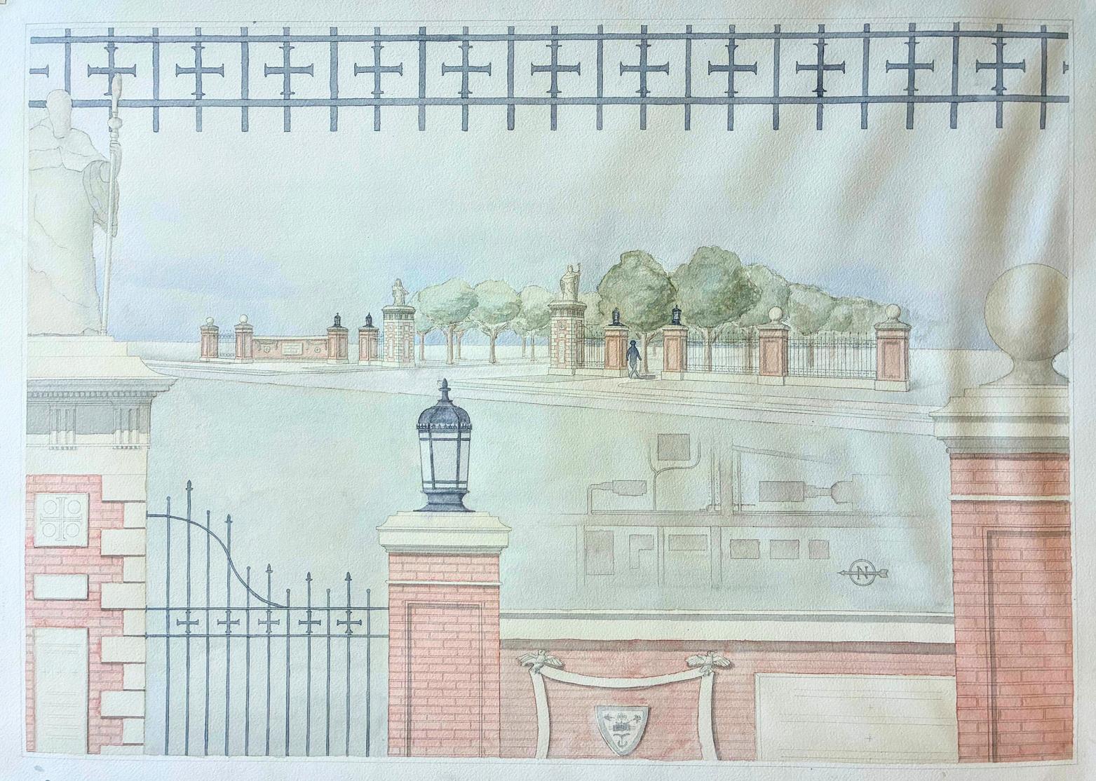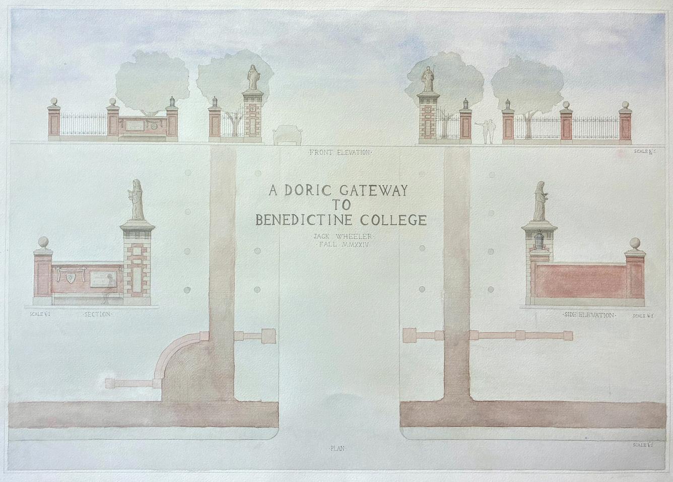 This design proposal is for a gatehouse to the governor’s mansion at Sacramento, CA. The intent was to create a composition that not only served its function as a gatehouse but also gave an introduction to the style of the governor’s mansion that would follow after this project.