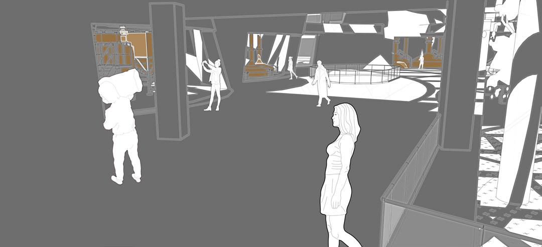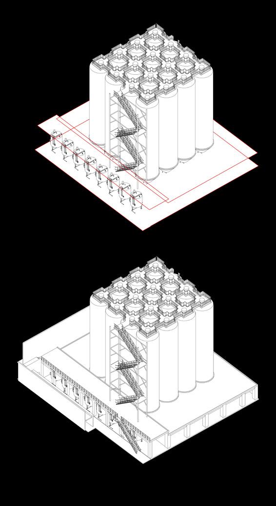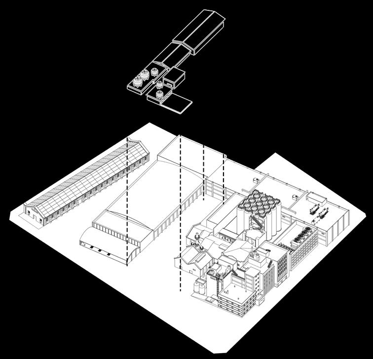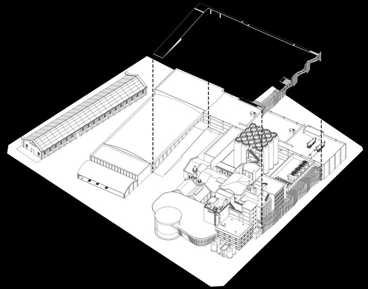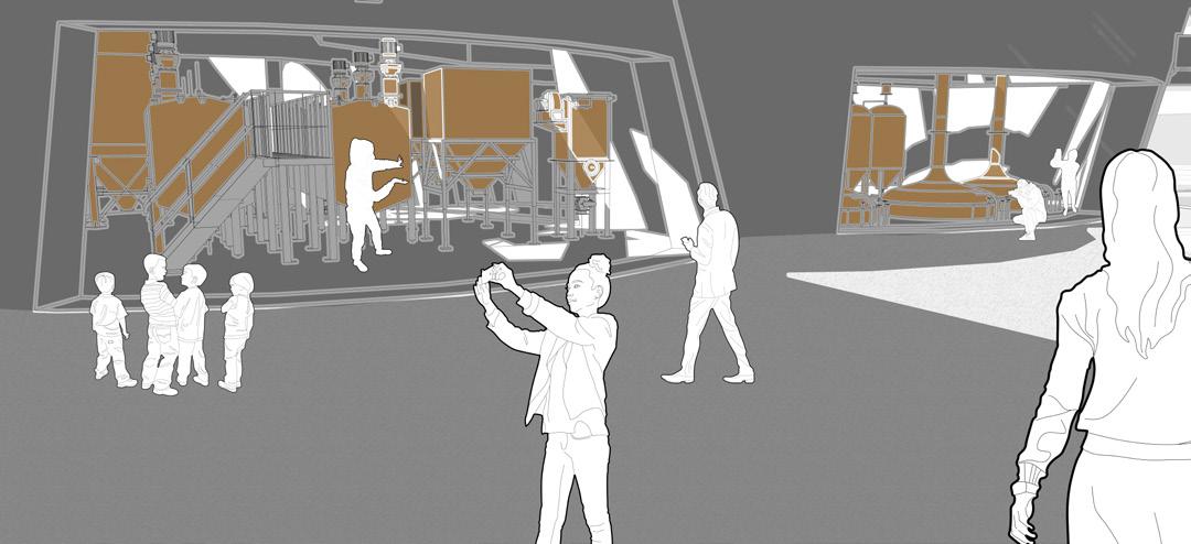 10 14 13 圖說 基地分割移轉前後比較 09 關於飲酒之故事序列 10 基地路徑過程 11 基地路徑結合飲酒故事序列 12 空間置入- 01生產線空間置入 02路徑置入串聯 03 屋頂結構產生倒影 04 屋頂玻璃 13 01 02 03 04 酒廠古蹟舊建築增改建-01 部分建築倉庫移除 02 置入連接舊建築大廳 03 置入古蹟廊道 14 01 02 03