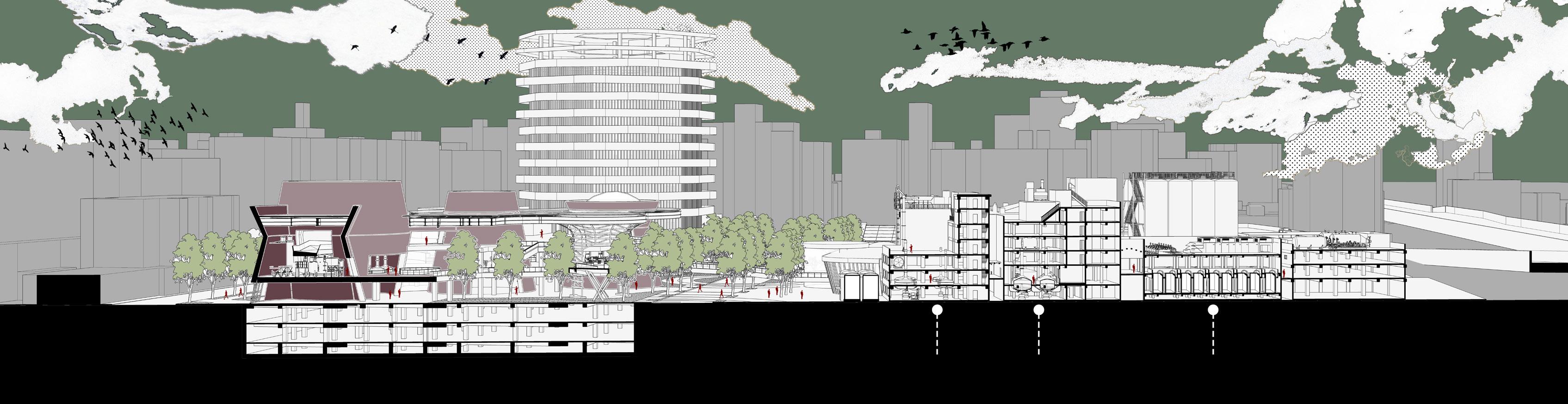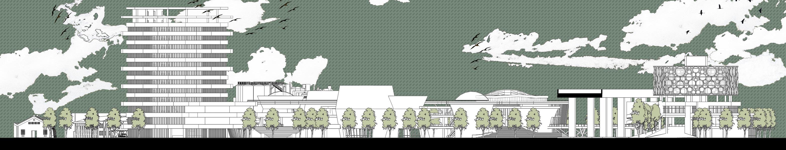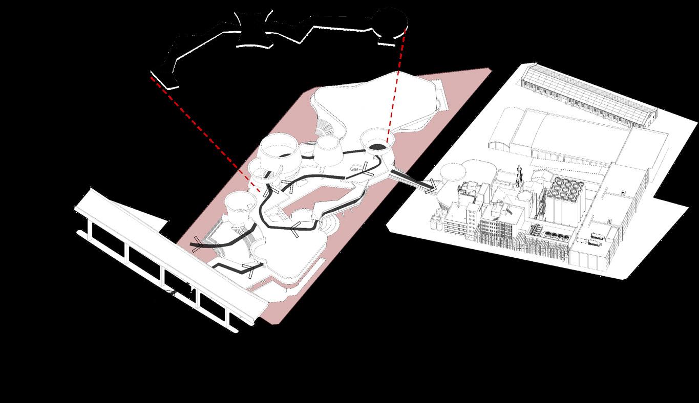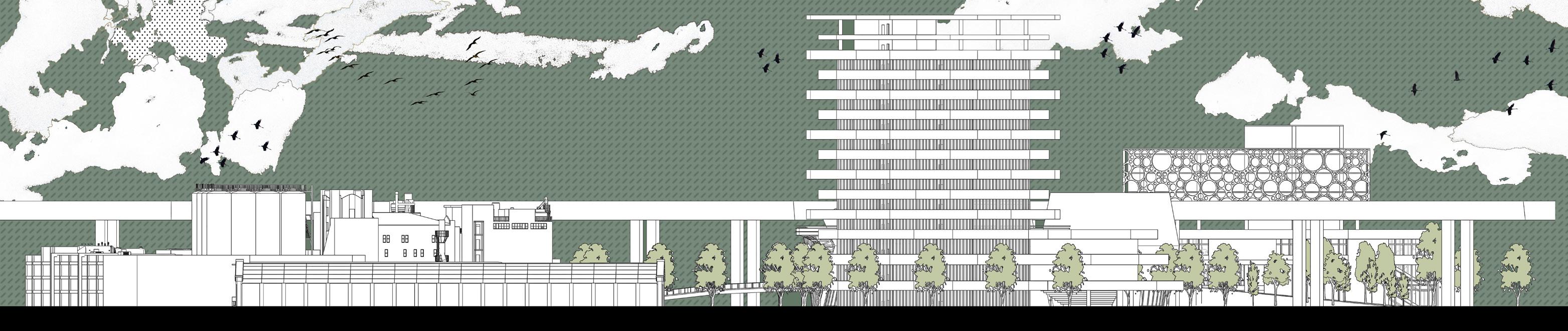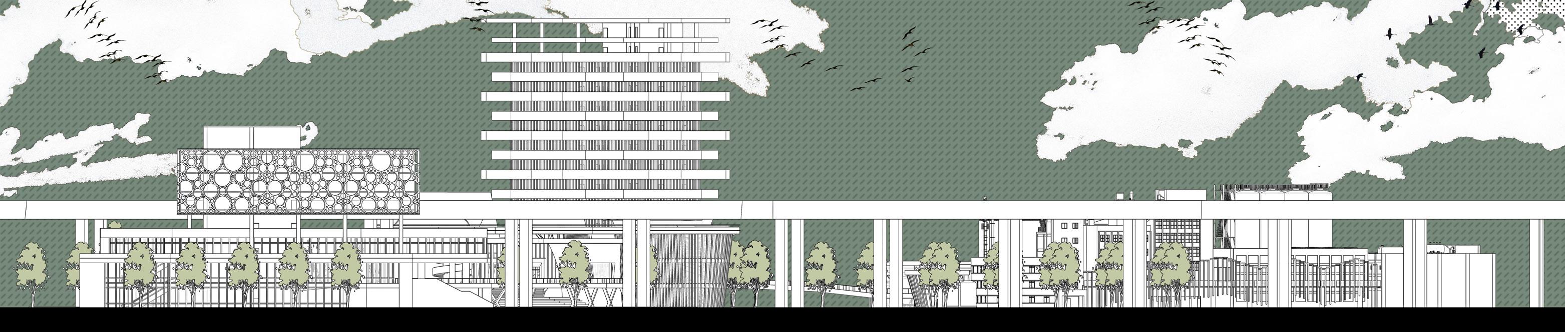 44 A B C D E A B C D E 3F 2F 1F/B1 重要據點 A B C D A三義火車站 B三義木雕博物館 C勝興車站 D龍騰斷橋 (基地位置) 主要進出道路 次要進出道路 藍帶 快速道路 苗栗縣三義鄉魚藤坪段(龍騰斷橋周邊) 基地選址原因 1.特殊性-歷史保存價值 -舊鐵道觀光 2.三義鄉產業鮮明-木雕。苦茶油生產 3.人潮聚集地-復興產業重要因素 現有鐵橋 行人體驗路線 行車路線 視野 山凹趨勢 地形走勢 現有停車場 現有停車場 現有攤販市集 基地位置 與新鐵橋橋墩產生對話, 與斷橋形成距離感對尊重古蹟回應 由橋墩意象形成平面 凸顯橋墩圓弧彎曲之美 間接形成指向性平面 流通 相異高層差 SITE PLAN 1F PLAN 2F PLAN 3F PLAN 01234M 01234M 01234M JL呂亮穎 斷橋 +450 +1170 +1170 +850 +1170 +750 +15 +0 -400 -800 -1200 划龍舟學校 將在地特色結合到學校洲美 國小將成為龍舟示範學校在地體 驗龍舟文化,並推廣。 示範學校(洲美國小) 都農學校 將食農教育引入學 校,洲美國小/中正高中 /文林國小。 設計概念 施作目標 (短/中/長) 短期-由外部沿水岸開始施作與重點公園同時進行 中期-深入基地範圍,包含屈原宮,學校,科專用地 長期-尖角公園及其他住宅區域之都市農園與水道雨撲滿 都市農園 城市划龍舟 在建築上設置雨撲 地面馬路旁設置渠 在建築下設置儲水 地面層設置透水鋪 海綿城市 石牌站 福國路未來捷運設置點 明德站 交通分析 淹水浅勢分析 水文分析 五分港溪 磺溪 基隆河 蜆仔溪 綠帶分析 田野 田野 田野 捷運線綠帶 外雙溪 沿岸綠帶 周遭機能分析 河濱公園 校園 商圈 人潮節點 捷運動線 紀念公園 屈原宮 人文 植物種類 洲美里內有座屈原宮,是洲美里 居民共同的信仰中心,每逢端午佳節, 地方居民總是自發性全體動員,舉辦隆 重莊嚴的祭典儀式龍舟競渡,此傳統一 直傳承至今。 台灣構樹 穗花棋盤腳 竹 赤桐樹 都市農園 生質能 產學關係 自產自賣 植栽鋪面分布 穗花棋盤腳 赤桐樹 構樹 竹 竹 赤桐樹 穗花棋盤腳 穗花棋盤腳 構樹 基地分析 基地區域性質 策略與解法 五大構面: 交通旅遊 結合都市農園與划龍舟 ,創造當地生活觀光文 化圈 環境生態 研究當地植物種類,延續 該基地原有的自然景觀。 綠能產業 利用當地布袋蓮,作為 生質能,也利用當地路 壓發電,太陽能發電等。 安全防災 雨撲滿與漕溝可做為緊 急取水區,以及各個街 廓之大型戶外逃生平台。 健康生活 延續水岸生活,自行車與水岸步 道之風景帶入基地內,配合划龍 舟之假入,形成健康生活圈。 水漣漪 依據淹水警示區的分布, 決定利用這些水,把劣 勢轉為優勢,灌溉都市 農園與划龍舟之水道。 人漣漪 學校,公園皆是人潮聚集點, 希望依據人潮節點設置都農 與划龍舟體驗,帶動地方都 市旅遊觀光與生產活動。 示範學校與產學合作都農分布 都市農園分布 雨撲滿與溝渠分布 划龍舟水道分布 示範學校 與 屈原宮帶 此地之屈原宮是 台灣唯一祭拜屈 原的廟,因此這 裡也是台灣著名 划龍舟舉辦區, 因此在此設立許 多練習划龍舟之 設施,提供居民 玩耍,增強此社 區之獨特性。同 時也結合周邊學 校,傳承此民俗 活動 交通節點帶 此處為捷運與道 路之交會處,是 台北市居民開車 或是搭乘公共運 輸之重要節點, 因此為了吸引外 地人的目光,此 區綜合都農與划 龍舟之意象,創 造這個基地之門 戶意象。 產學合作都農帶 此區有兩所學校,而 附近為顆專用地,因 此希望透過企業帶動 都農的方式,投過對 學生的教育,能夠傳 承永續都市與永續企 業之目標。 水岸生活帶 延續河濱公園悠 閒步調之元素, 在河邊樹蔭下騎 腳踏車的風情, 帶入基地內。 布袋蓮 陳逸霖/林庭仲/呂亮穎 2017 谷雨盃 National architecture design compitition 2018 Taipei smar t ecological community design competition