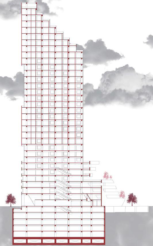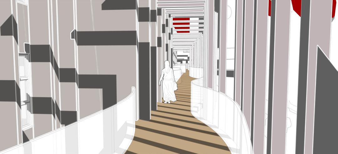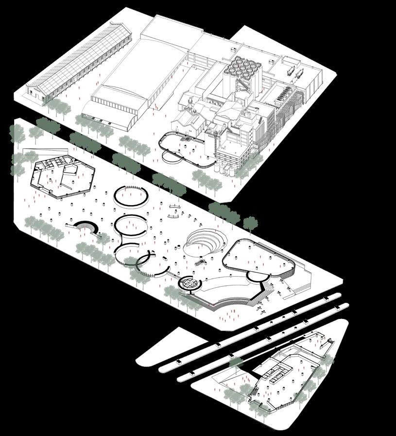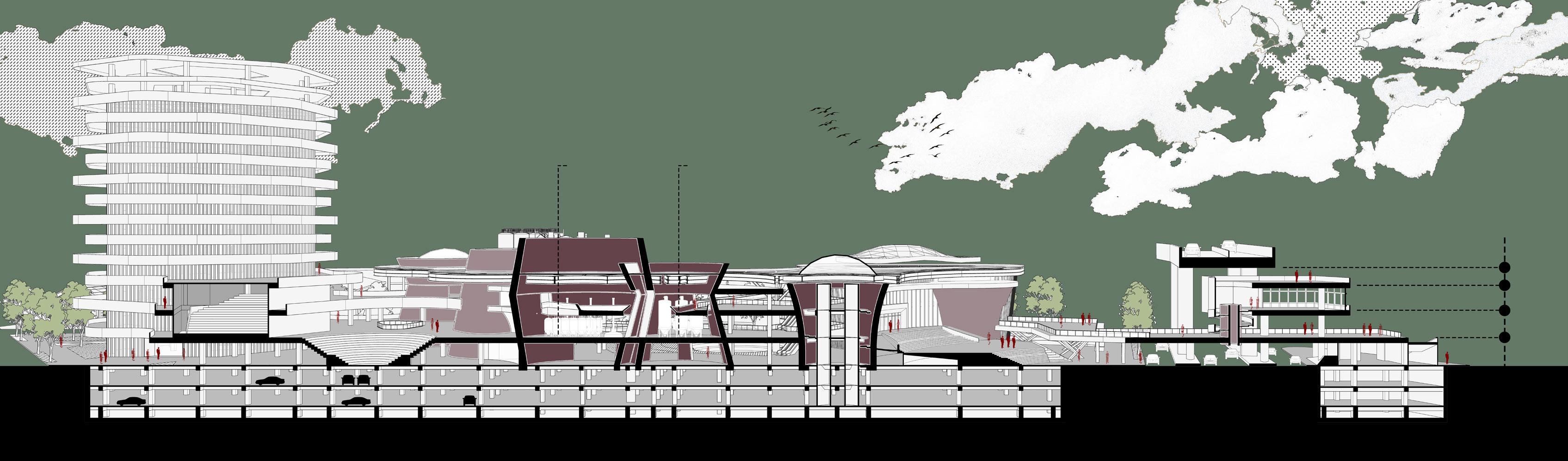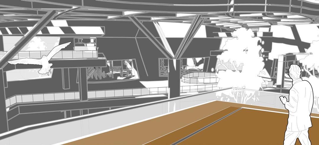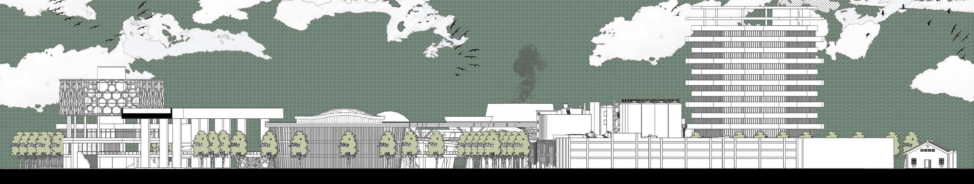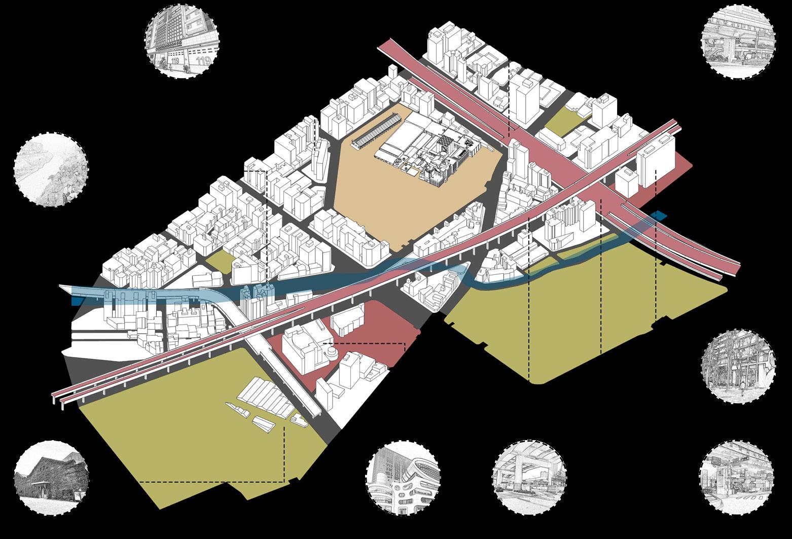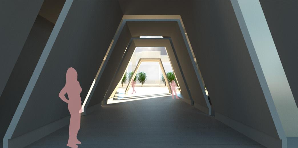 44 A B C D E A B C D E 3F 2F 1F/B1 重要據點 A B C D A三義火車站 B三義木雕博物館 C勝興車站 D龍騰斷橋 (基地位置) 主要進出道路 次要進出道路 藍帶 快速道路 苗栗縣三義鄉魚藤坪段(龍騰斷橋周邊) 基地選址原因 1.特殊性-歷史保存價值 -舊鐵道觀光 2.三義鄉產業鮮明-木雕。苦茶油生產 3.人潮聚集地-復興產業重要因素 現有鐵橋 行人體驗路線 行車路線 視野 山凹趨勢 地形走勢 現有停車場 現有停車場 現有攤販市集 基地位置 與新鐵橋橋墩產生對話, 與斷橋形成距離感對尊重古蹟回應 由橋墩意象形成平面 凸顯橋墩圓弧彎曲之美 間接形成指向性平面 流通 相異高層差 SITE PLAN 1F PLAN 2F PLAN 3F PLAN 01234M 01234M 01234M JL呂亮穎 斷橋 +450 +1170 +1170 +850 +1170 +750 +15 +0 -400 -800 -1200 划龍舟學校 將在地特色結合到學校洲美 國小將成為龍舟示範學校在地體 驗龍舟文化,並推廣。 示範學校(洲美國小) 都農學校 將食農教育引入學 校,洲美國小/中正高中 /文林國小。 設計概念 施作目標 (短/中/長) 短期-由外部沿水岸開始施作與重點公園同時進行 中期-深入基地範圍,包含屈原宮,學校,科專用地 長期-尖角公園及其他住宅區域之都市農園與水道雨撲滿 都市農園 城市划龍舟 在建築上設置雨撲 地面馬路旁設置渠 在建築下設置儲水 地面層設置透水鋪 海綿城市 石牌站 福國路未來捷運設置點 明德站 交通分析 淹水浅勢分析 水文分析 五分港溪 磺溪 基隆河 蜆仔溪 綠帶分析 田野 田野 田野 捷運線綠帶 外雙溪 沿岸綠帶 周遭機能分析 河濱公園 校園 商圈 人潮節點 捷運動線 紀念公園 屈原宮 人文 植物種類 洲美里內有座屈原宮,是洲美里 居民共同的信仰中心,每逢端午佳節, 地方居民總是自發性全體動員,舉辦隆 重莊嚴的祭典儀式龍舟競渡,此傳統一 直傳承至今。 台灣構樹 穗花棋盤腳 竹 赤桐樹 都市農園 生質能 產學關係 自產自賣 植栽鋪面分布 穗花棋盤腳 赤桐樹 構樹 竹 竹 赤桐樹 穗花棋盤腳 穗花棋盤腳 構樹 基地分析 基地區域性質 策略與解法 五大構面: 交通旅遊 結合都市農園與划龍舟 ,創造當地生活觀光文 化圈 環境生態 研究當地植物種類,延續 該基地原有的自然景觀。 綠能產業 利用當地布袋蓮,作為 生質能,也利用當地路 壓發電,太陽能發電等。 安全防災 雨撲滿與漕溝可做為緊 急取水區,以及各個街 廓之大型戶外逃生平台。 健康生活 延續水岸生活,自行車與水岸步 道之風景帶入基地內,配合划龍 舟之假入,形成健康生活圈。 水漣漪 依據淹水警示區的分布, 決定利用這些水,把劣 勢轉為優勢,灌溉都市 農園與划龍舟之水道。 人漣漪 學校,公園皆是人潮聚集點, 希望依據人潮節點設置都農 與划龍舟體驗,帶動地方都 市旅遊觀光與生產活動。 示範學校與產學合作都農分布 都市農園分布 雨撲滿與溝渠分布 划龍舟水道分布 示範學校 與 屈原宮帶 此地之屈原宮是 台灣唯一祭拜屈 原的廟,因此這 裡也是台灣著名 划龍舟舉辦區, 因此在此設立許 多練習划龍舟之 設施,提供居民 玩耍,增強此社 區之獨特性。同 時也結合周邊學 校,傳承此民俗 活動 交通節點帶 此處為捷運與道 路之交會處,是 台北市居民開車 或是搭乘公共運 輸之重要節點, 因此為了吸引外 地人的目光,此 區綜合都農與划 龍舟之意象,創 造這個基地之門 戶意象。 產學合作都農帶 此區有兩所學校,而 附近為顆專用地,因 此希望透過企業帶動 都農的方式,投過對 學生的教育,能夠傳 承永續都市與永續企 業之目標。 水岸生活帶 延續河濱公園悠 閒步調之元素, 在河邊樹蔭下騎 腳踏車的風情, 帶入基地內。 布袋蓮 陳逸霖/林庭仲/呂亮穎 2017 谷雨盃 National architecture design compitition 2018 Taipei smar t ecological community design competition