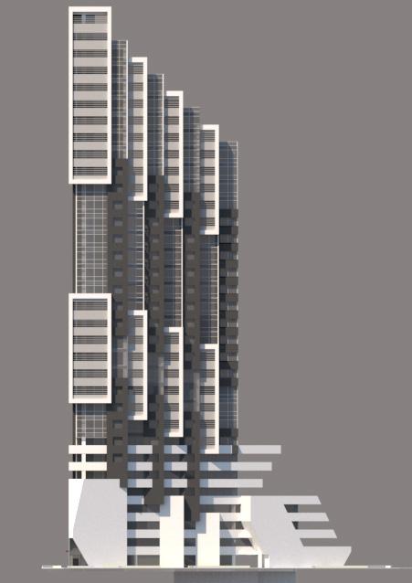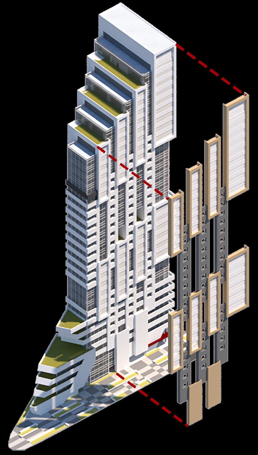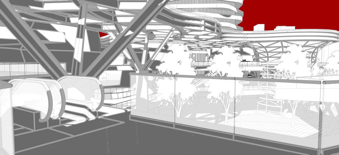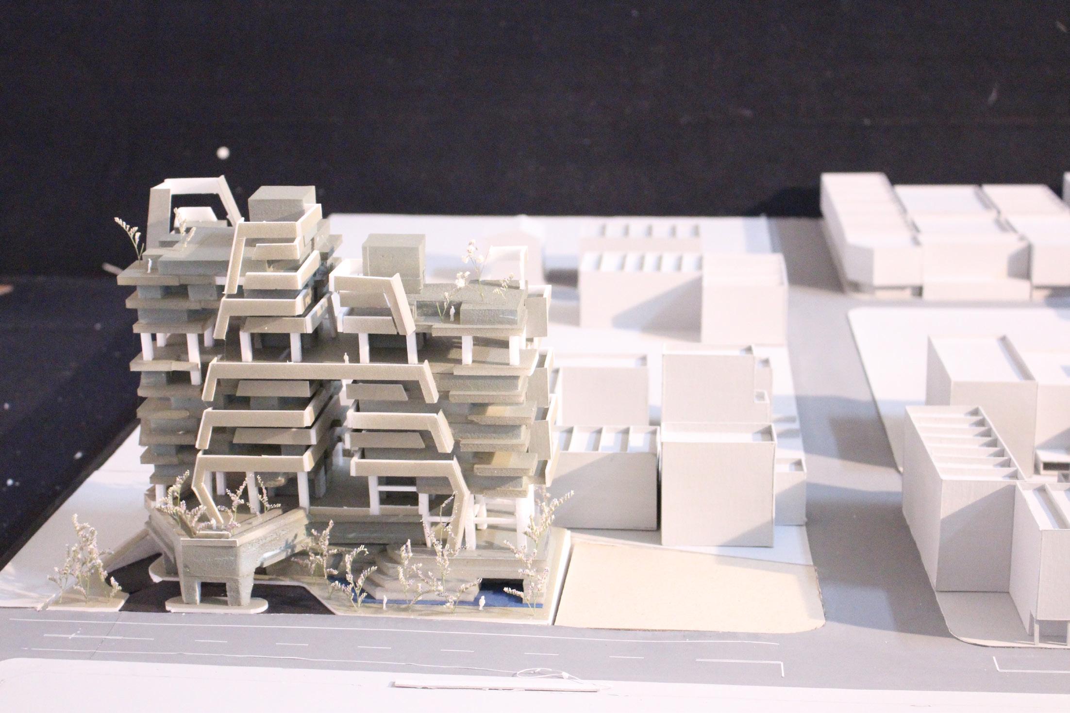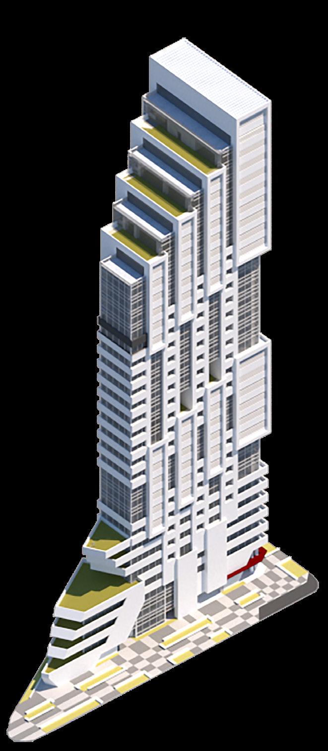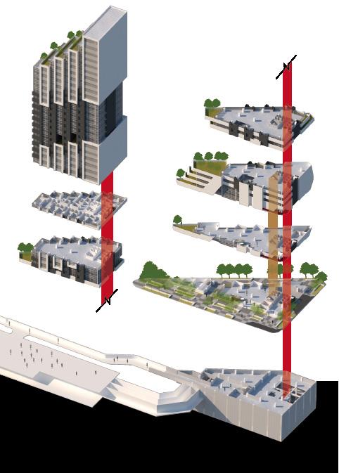 35 06 07 08 09 10 11 12 圖說 06 量體配置過程 09 06 街道端點置入量體 07 低層量體與量體單元切割 08 量體層次上下交錯 09 多層次平台水平分割 10 空間屬性置入 11 垂直綠色空間 10 立面層次置入