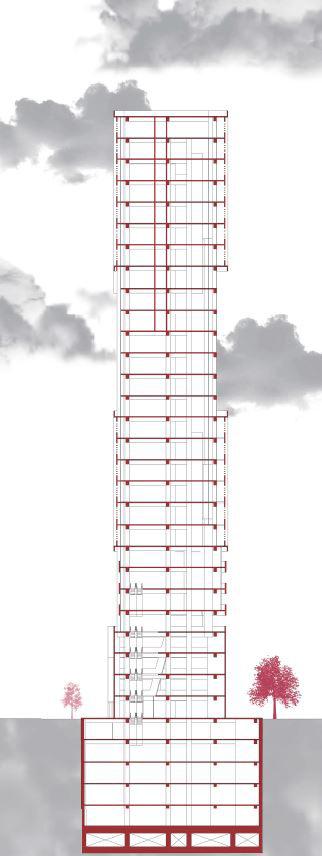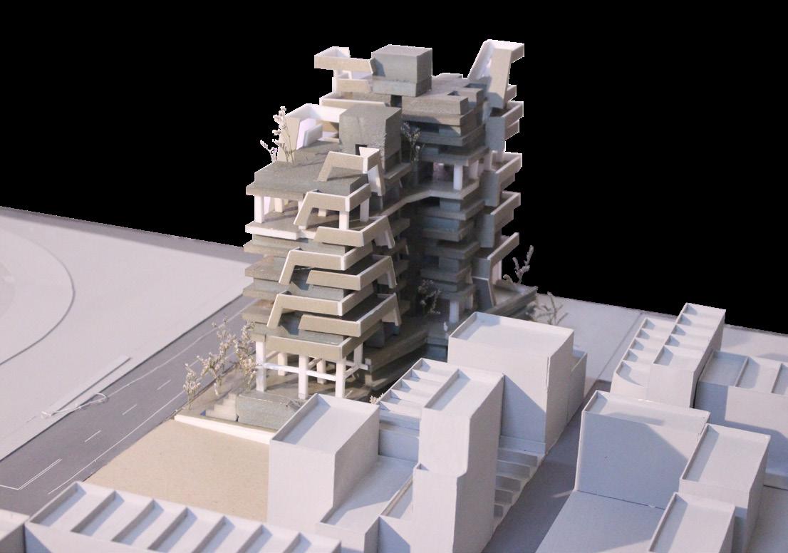42 SSF Living S(sun)F(family)F(forest) Living 2017_大三 台灣社會高齡化趨勢已越來越明顯,南投埔里亦 是如此,而在南投好山好水的地方適合老年生活 與養老。此設計希望老人能相互組成團體以單元 系統的方式構成建築,創造許多綠色露臺,陽台 提供老人使用,讓老人能舒適生活。 Location : Nantou County Taiwan Year : 2017 Type : Nursing House design