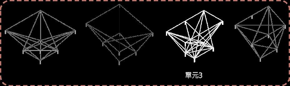 27 10 11 12 13 14 圖說 單元連接,使用共通點連續纏繞 10 全模具底層纏繞增加結構性 11 全模具底層纏繞增加結構性 12 連續拱形1製作過程 13 連續拱形2製作過程 14