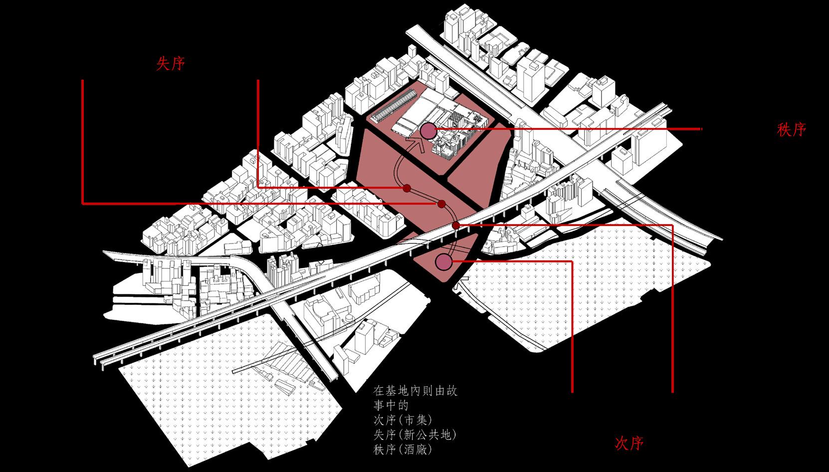 7 01 03 04 02 圖說 -建國啤酒廠 大區域範圍分析 01 中區域範圍分析 02 啤酒廠基地、華山玉市及住宅區基地 整合設計。 03 啤酒廠生產動線及重要設備 04