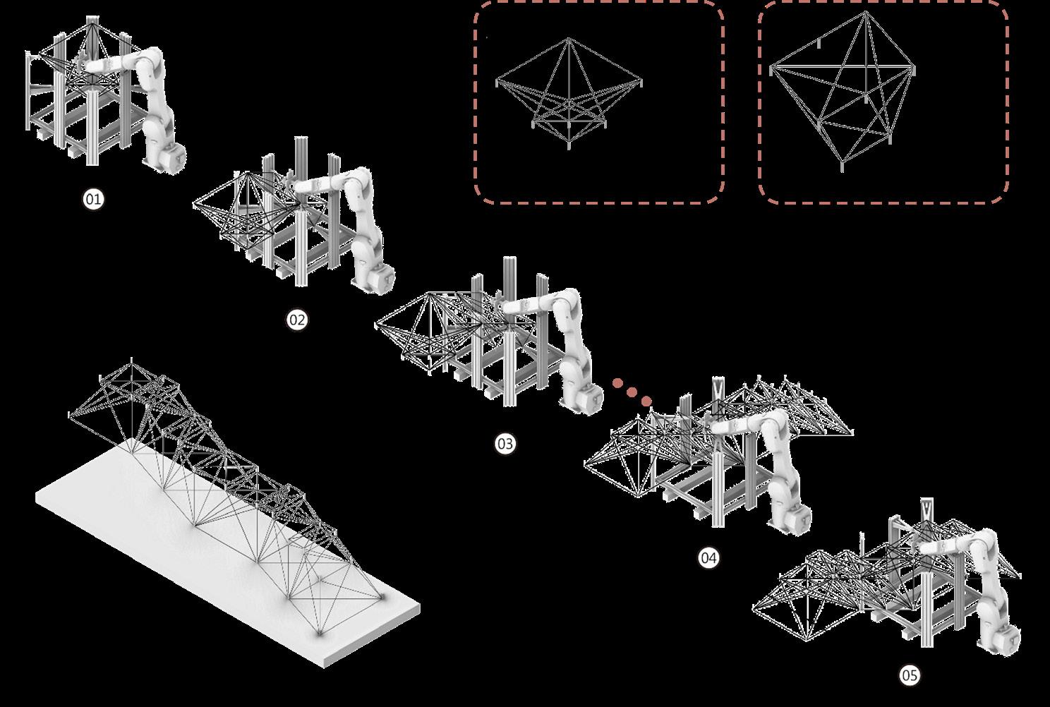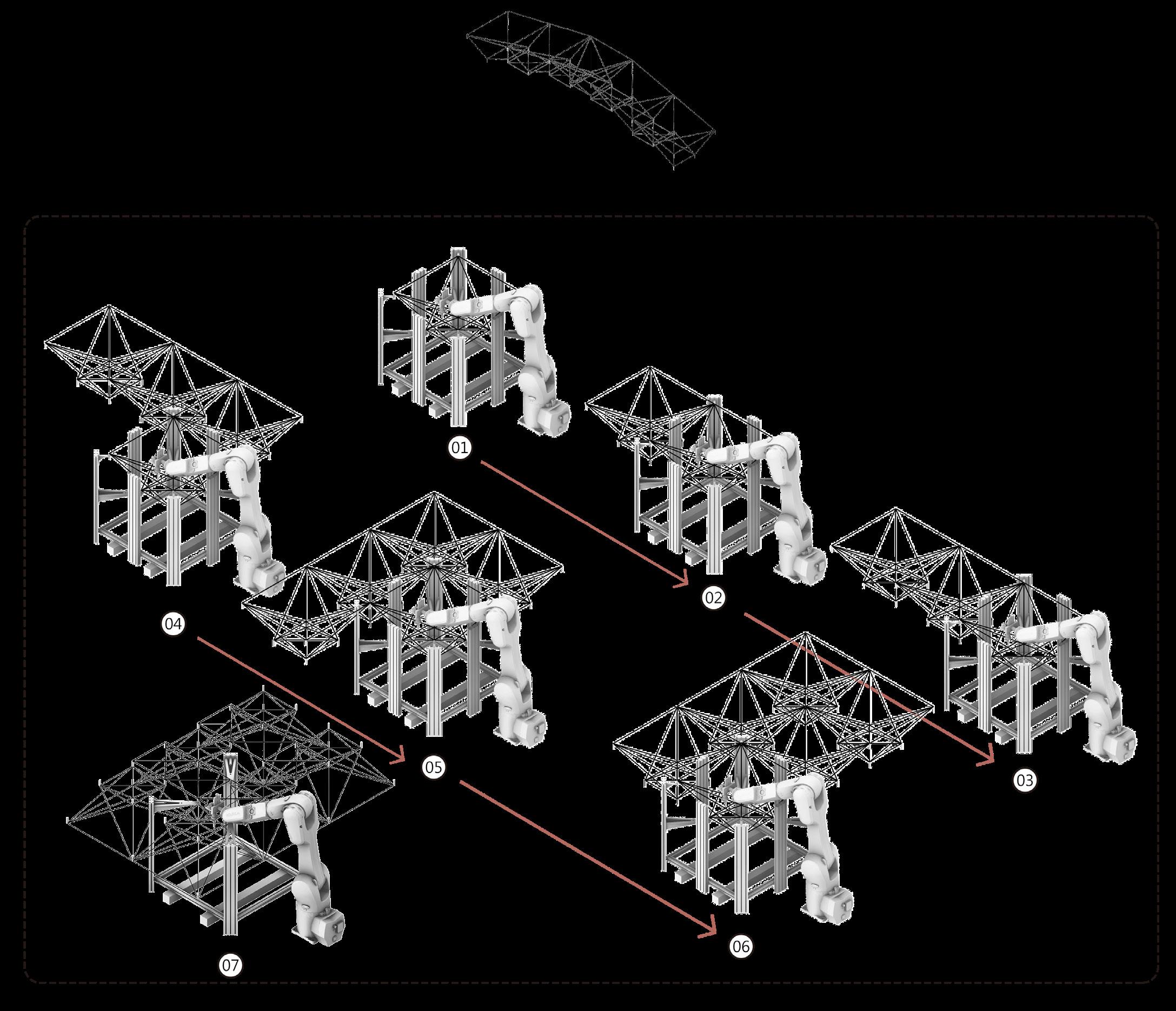 Layered Module Aided Robotic Arm Weaving Construction NO.3_城南書居 South City Living With Book NO.4_竹塹城記憶 The Memory of Banboo City NO.5_龍騰 The Rising Bridge NO.6_ SSF Living S(sun)F(family)F(forest) Living NO.7_ 削龍 Cut Dragon