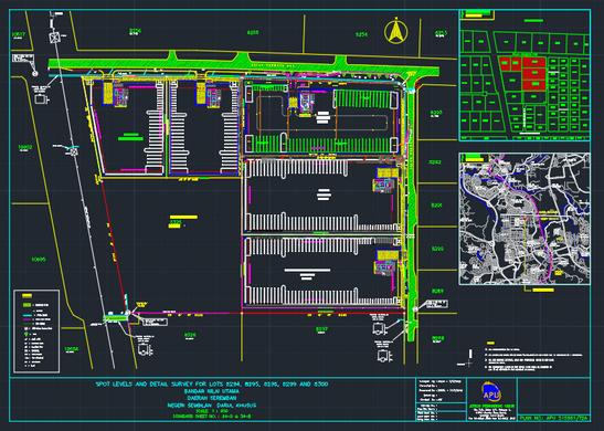Check the survey drawings make sure all site data is correct. Draw grid line and parking plan before we start design the plan layout. Draw the boundary line, setback line, parking and landscape based on the GP Industry Requirement of Jabatan Perancangan Pembangunan Majlis Perbandaran Selangor