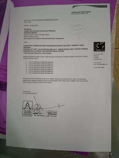 Compilation of five LOTs documents and drawings that required from the MBS DO Submission Checklist and print it out for Ar. Joshua to submit to clients to do a final check before submitting authority for approval of earthwork.