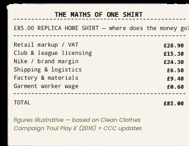 Someonemakestheshirt. Someonemarketsthe dream.Someonetakes mostoftheprofit. Behindthebadgeare widerquestionsoflabour, transparencyandpower.