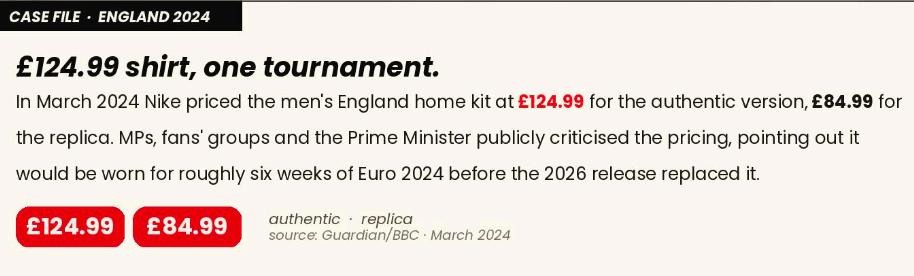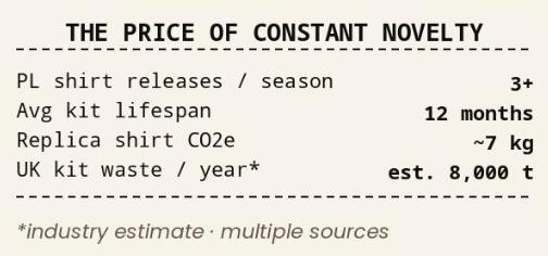 Afootballshirtismarketedastimelessloyalty. Butit'ssoldthroughshortcycles.Theissueis biggerthanoneshirt.