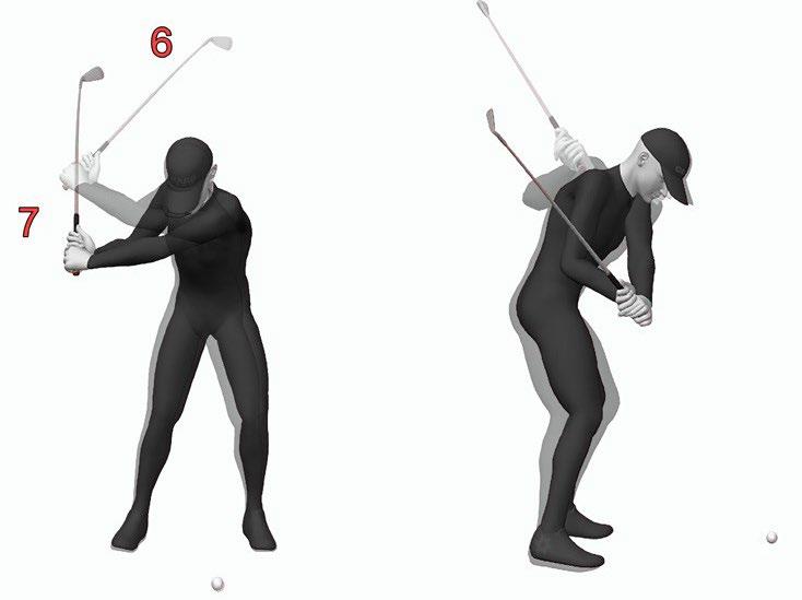 This image has positions 5 and 6 overlayed on top of one another. Here you can see the difference in this golfer’s Top vs -.2 position. By choosing -.2, we can be assured that the downswing is underway.