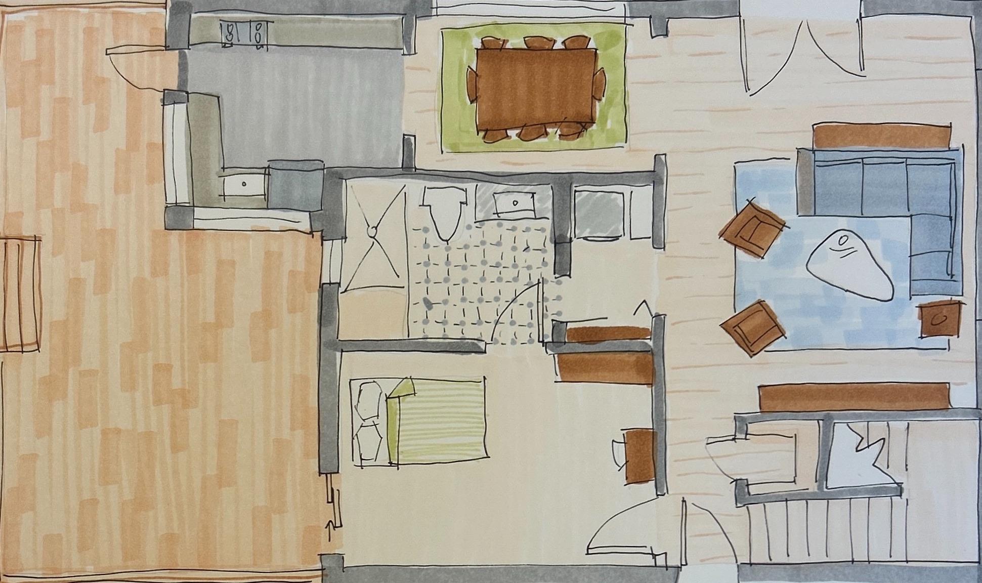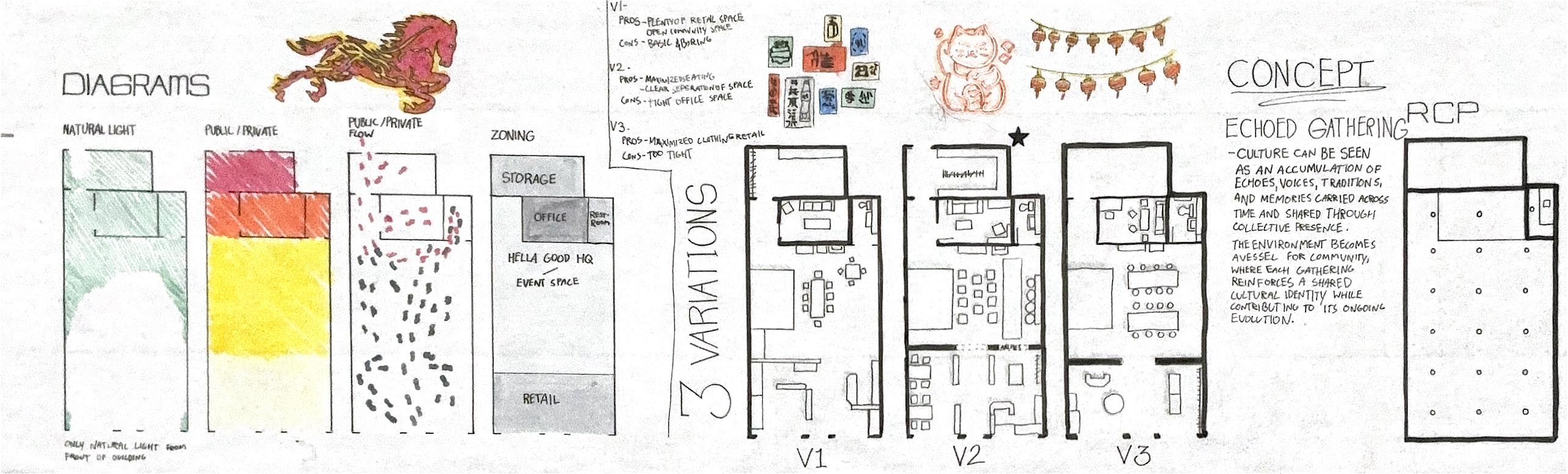 This project strengthened my ability to translate client narratives into functional, human-centered design solutions while developing clear visual and verbal communication through drawings, diagrams, and final presentation materials.