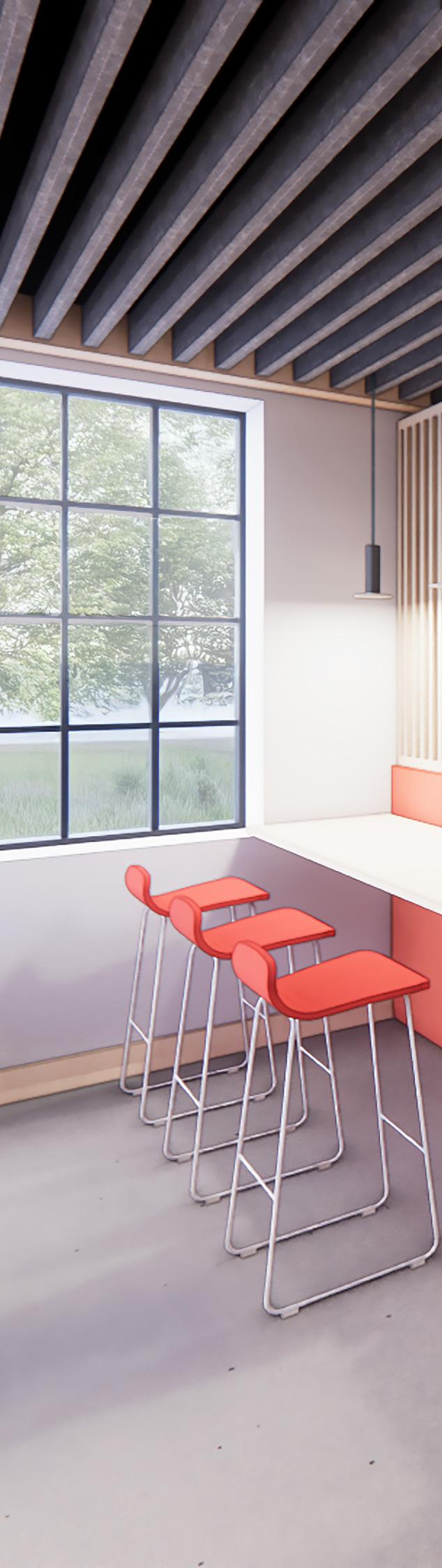 • In a library setting occupant comfort and ability to focus is paramount, so incorporating acoustics is vital to the efficiency of the space