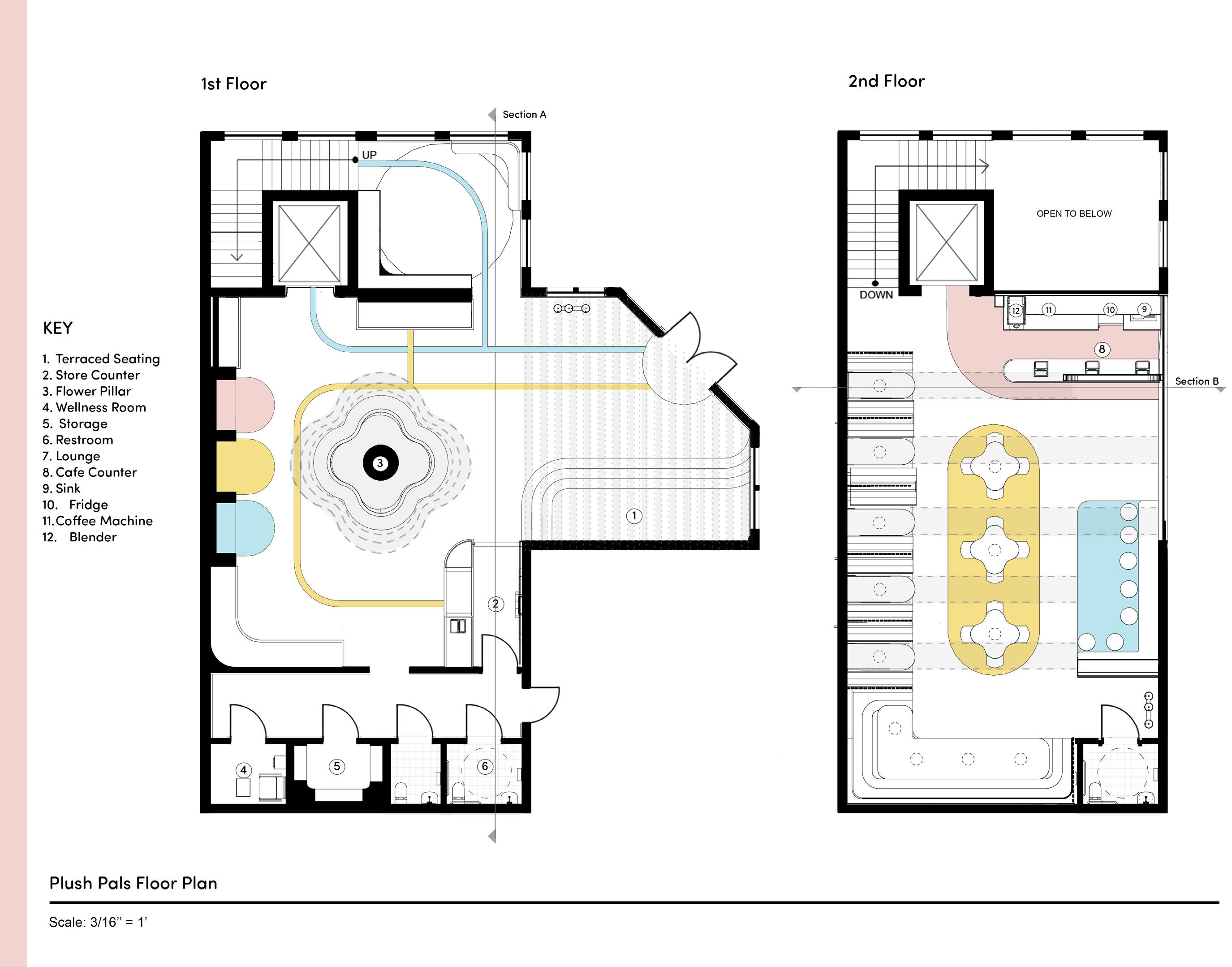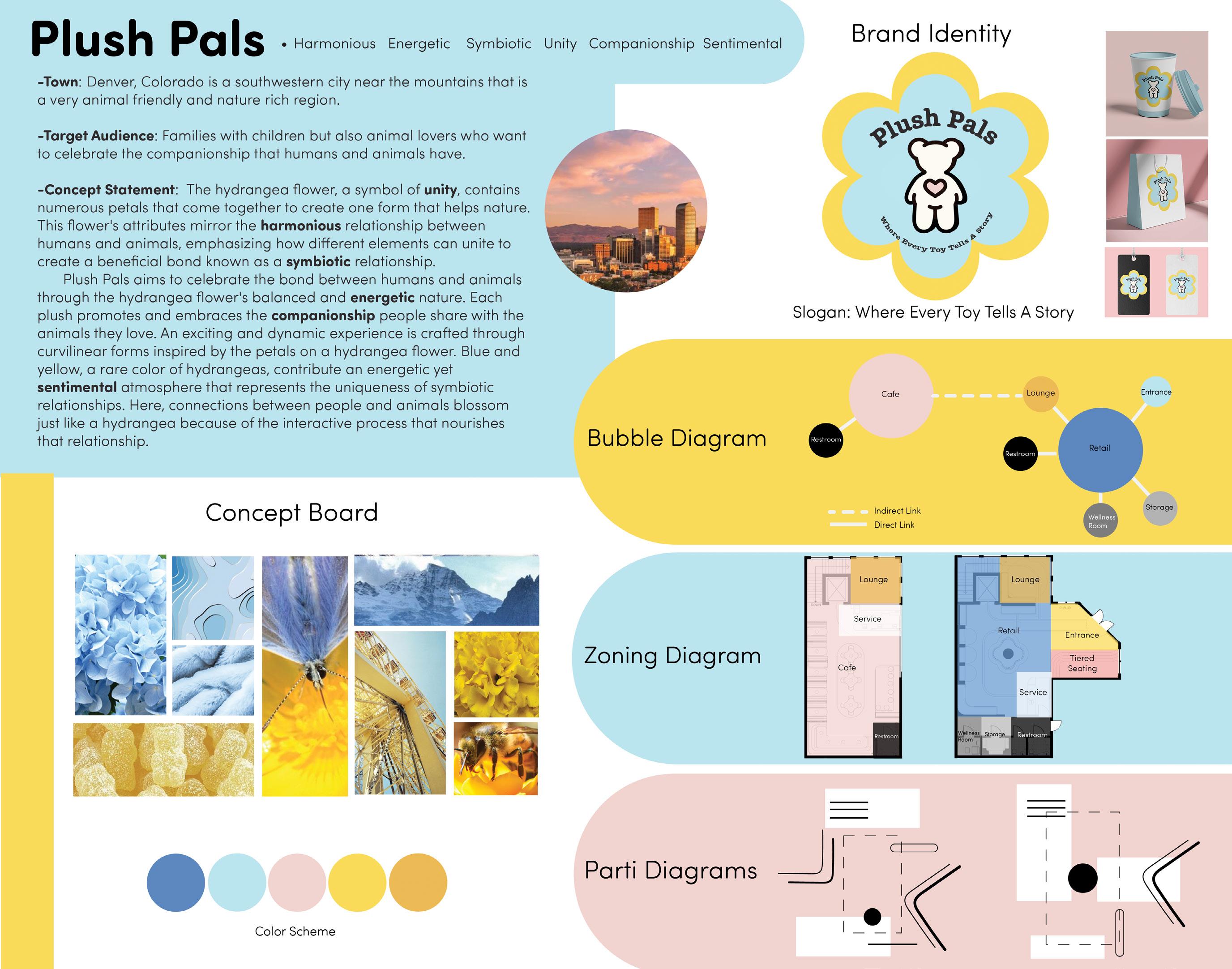 Plush Pals is a dynamic retail space located in Denver, Colorado that merges the realms of food and beverage with the retail function of personalized plush animals. This toy store strives to celebrate the connection humans have with animals through the curvilinear forms and symbolism of the Hydrangea flower.