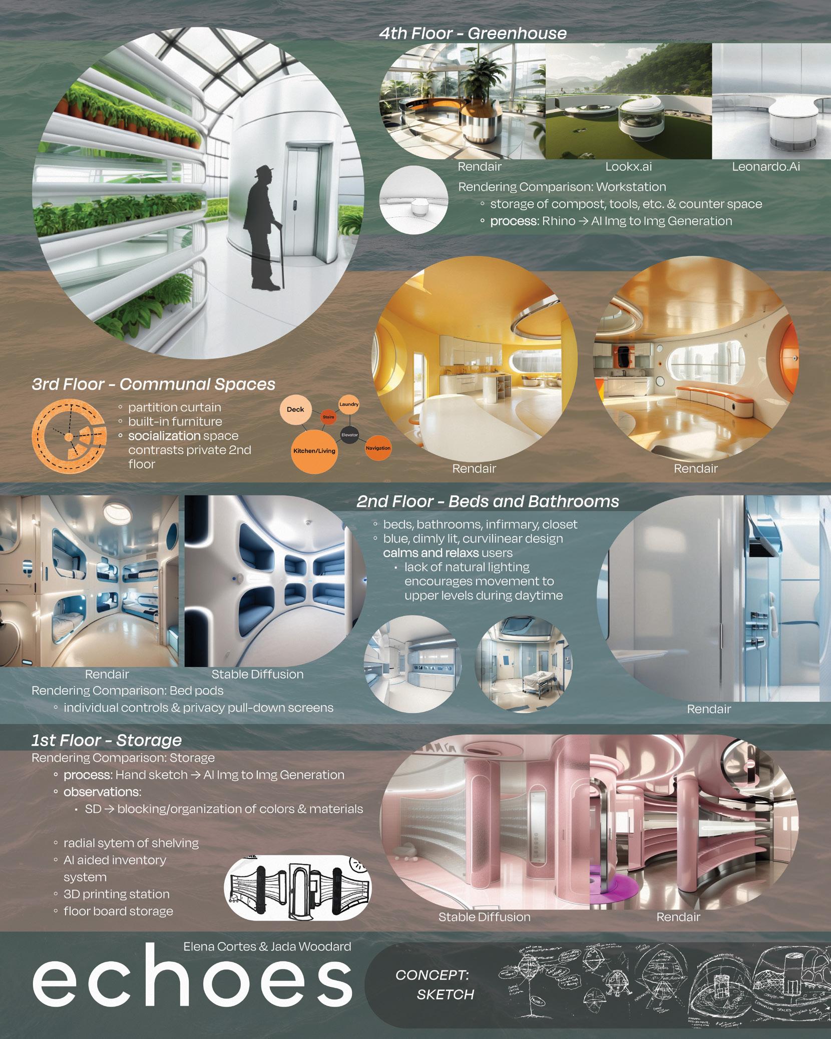 Cortes, Elena. “Bed & Bath Space Accessible Bathroom Comparison (Right).” Stable Diffusion, Stability AI, stability.ai/. Cortes, Elena. “Bed & Bath Space Bathroom Stalls and Vanity.” Stable Diffusion, Stability AI, stability.ai/. Cortes, Elena. “Bed & Bath Space Bed Pods Room.” Stable Diffusion, Stability AI, stability.ai/. Cortes, Elena. “Communal Space Orange Elevator.” Stable Diffusion, Stability AI, stability.ai/. Cortes, Elena. “Communal Space Orange Navigation Bridge/Control Center.” Rendair., Rendair Corporation, www.rendaircorp.com/. Cortes, Elena. “Exterior.” Rendair., Rendair Corporation, www.rendaircorp.com/. Cortes, Elena. “Greenhouse Planter Boxes Comparison (Left).” Rendair., Rendair Corporation, www.rendaircorp.com/. Cortes, Elena. “Greenhouse Planter Boxes Comparison (Right).” Stable Diffusion, Stability AI, stability.ai/. Cortes, Elena. “Greenhouse Shelves with Green Elevator.” Stable Diffusion, Stability AI, stability.ai/. Cortes, Elena. “Greenhouse Wide View (Elevator Became Glass Capsule).” Stable Diffusion, Stability AI, stability.ai/. Cortes, Elena. “Greenhouse Work Counter and Cabinets Minimalist.” Leonardo.Ai, app.leonardo.ai/. Cortes, Elena. “Greenhouse Work Counter and Cabinets.” Rendair., Rendair Corporation, www.rendaircorp.com/. Cortes, Elena. “Storage Space Comparison (Left).” Stable Diffusion, Stability AI, stability.ai/. Cortes, Elena. “Storage Space Comparison (Right).” Rendair., Rendair Corporation, www.rendaircorp.com/. Cortes, Elena. “Storage Space in Walkway.” Stable Diffusion, Stability AI, stability.ai/. “Elderly Man Pushing His Wife in a Wheelchair on a Sunny Day - Human Png.” Mrcutout.Com, www.mrcutout.com/images/cutouts/disabled-man-walking-0006-watermarked.jpg. Findlay, Jess. “Fiery-Throated Hummingbird.” A Spectacular Close-Up View of a Fiery-Throated Hummingbird, Colossal, Oct. 2016, www.thisiscolossal.com/wp-content/uploads/2016/10/hum-1.jpg.