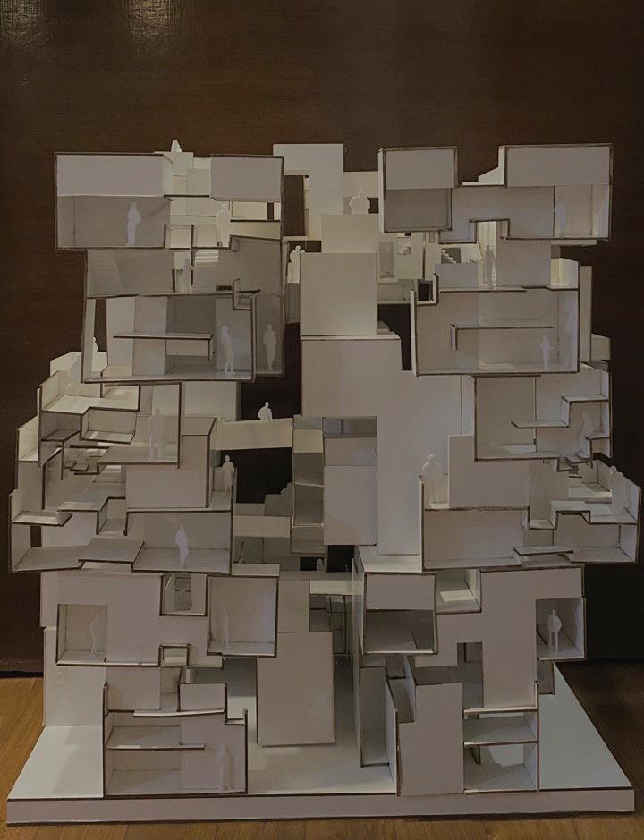 Through light, shadow, voids, and reflections, sectional explorations create compressed and expanded spaces that enhance movement and interaction. Mirrored, rotated, and stacked units generate a dynamic, layered dwelling within the city.