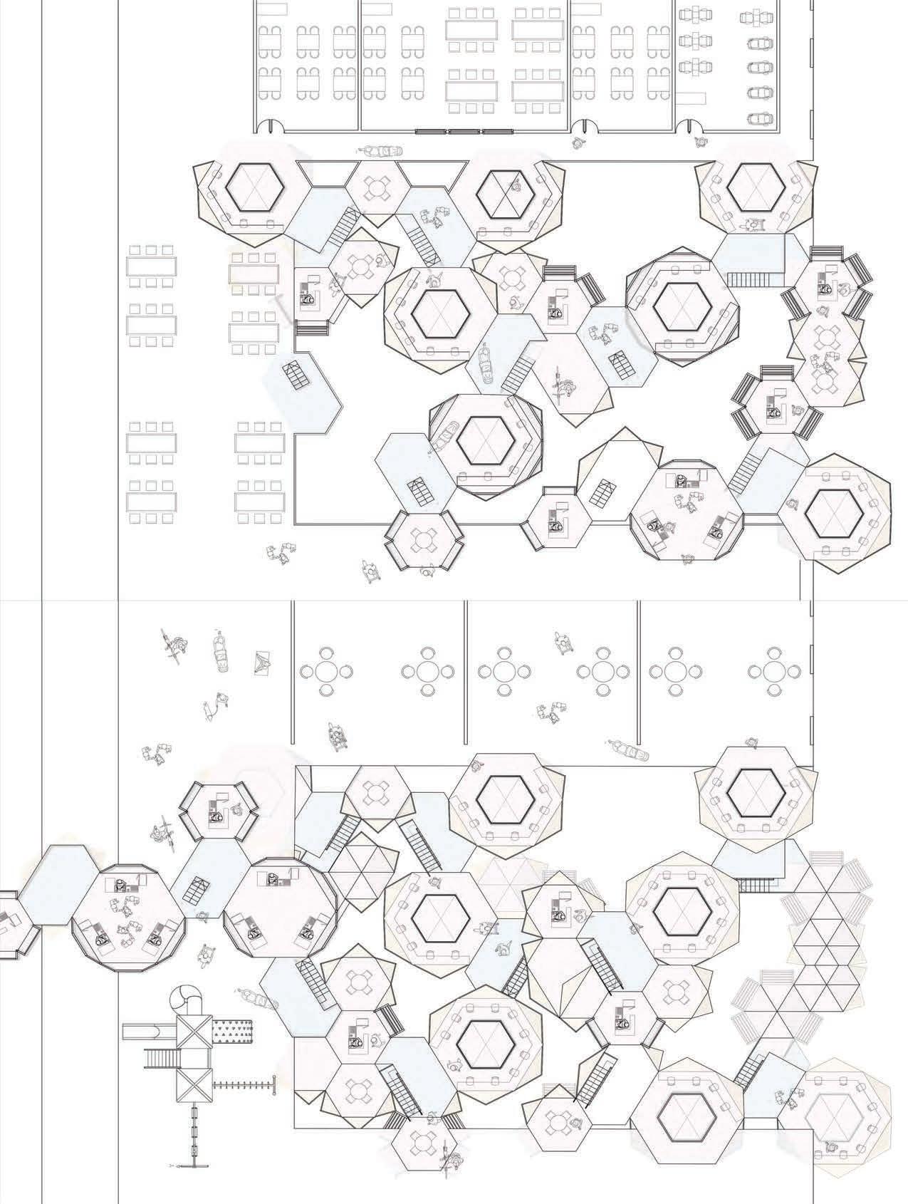 This design draws on the unique interplay of private, semi-private, andpublic spaces, blending them seamlessly to accommodate diverse user needs. Through strategic architectural interventions, the project transforms overlooked area, such as alleys, park walkways, and void decks, into vibrant communal hubs.