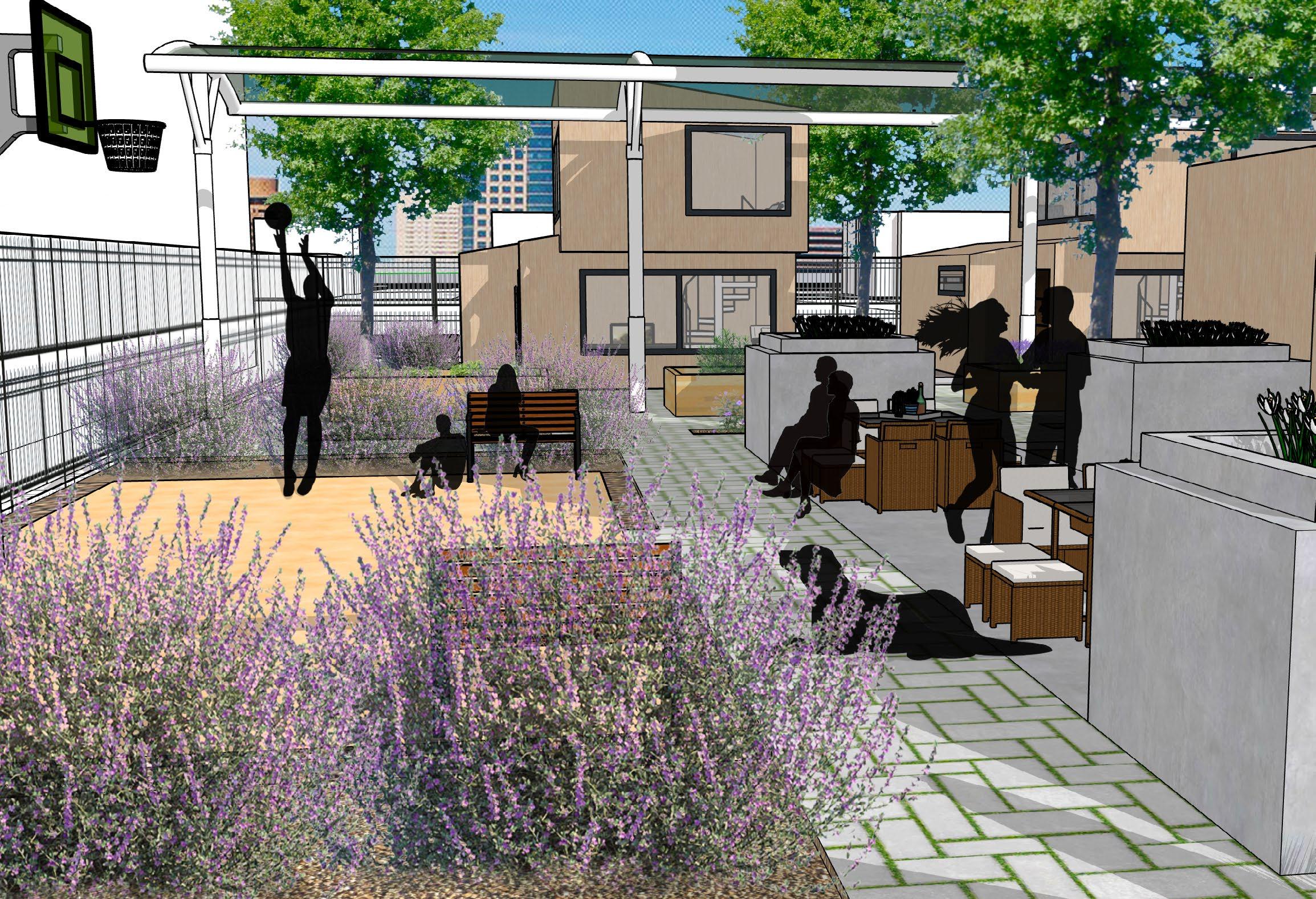 Workforce housing for emerging urban designers with under five years of experience provides access to attainable, creative, and collaborative spaces. This community of six compact, modular, container dwellings include three 1b1b, two 2b1b, and one accessible studio. It also includes common areas and a landscaped courtyard for shared recreations of interest. as and a landscaped courtyard for shared recreations of interest.The community has shared indoor and outdoor spaces, including a lounge pit, community gardens, a recreation court, and studio that can be open to the public or rented for collaborative work and to generate community revenue, if desired.
